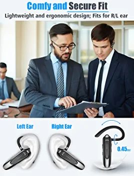 Wireless Bluetooth Earpiece with Dual Mic and Noise Canceling for Cell Phone, 20Hrs Talk Time and 180 Days Standby. Suitable for iPhone, Android, Home Office, and Driving.