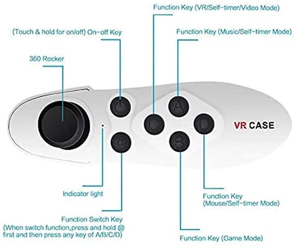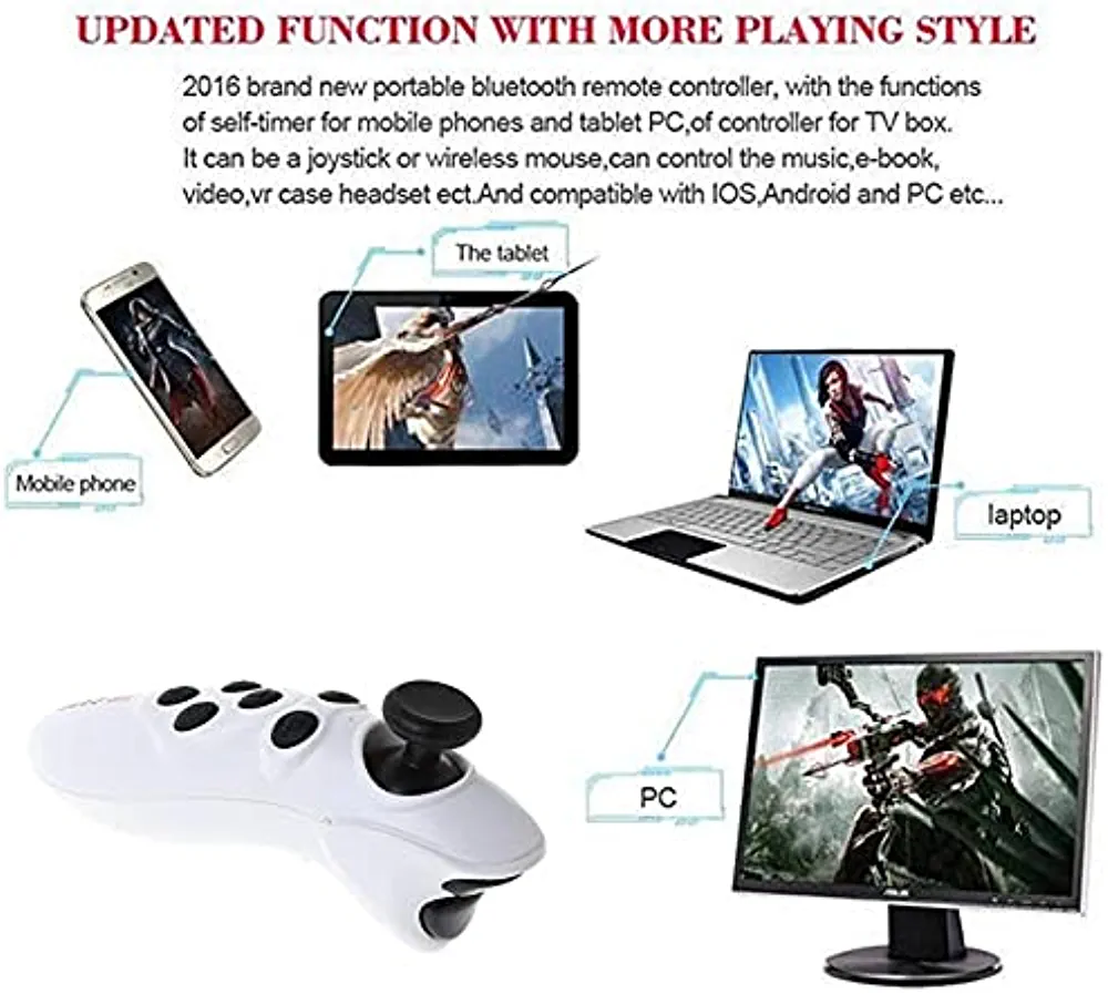 Wireless Bluetooth Gamepad for Android and iOS Devices. Compatible with VR Glasses. Color: White.