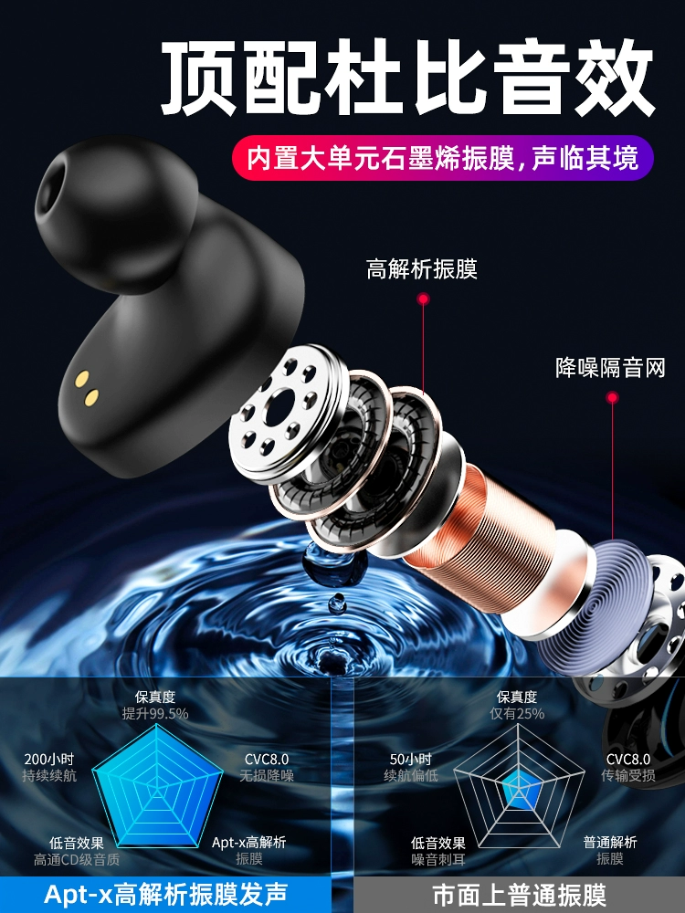 Wireless Bluetooth headset binaural mini in-ear stealth sports tiny high-end men’s and women’s models with long battery life and standby