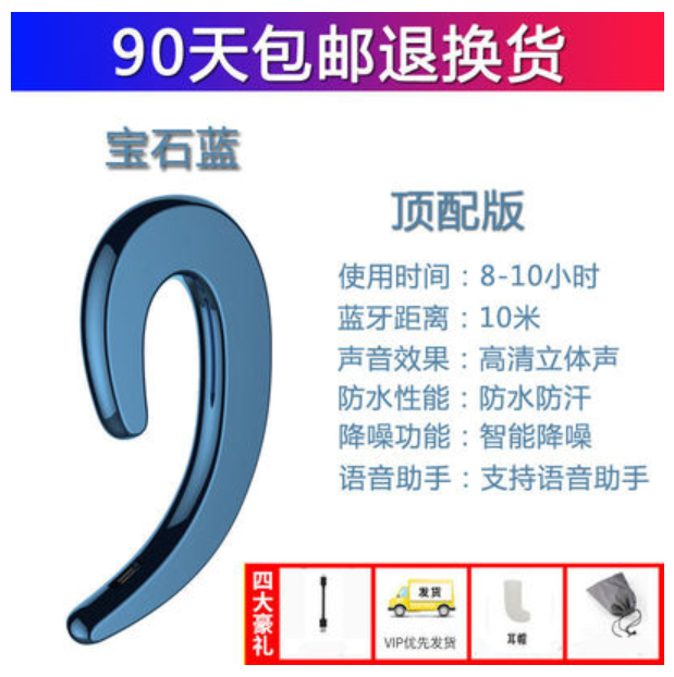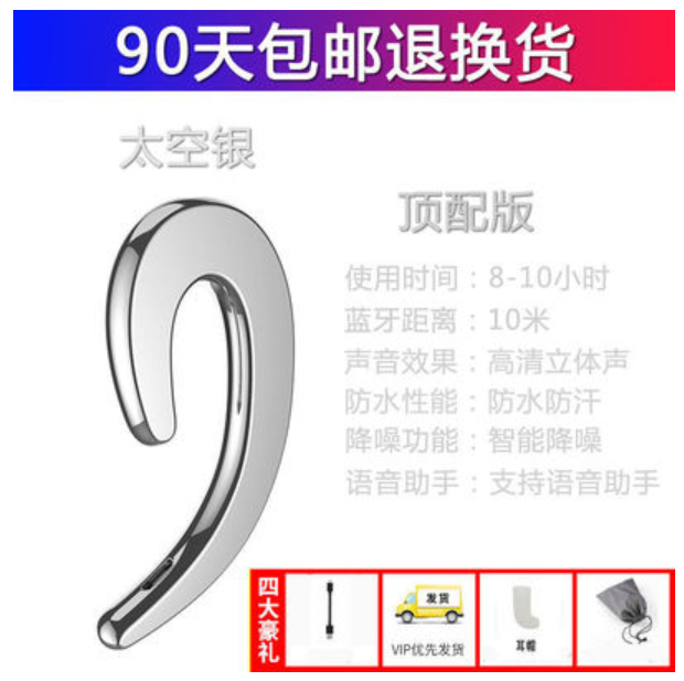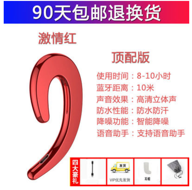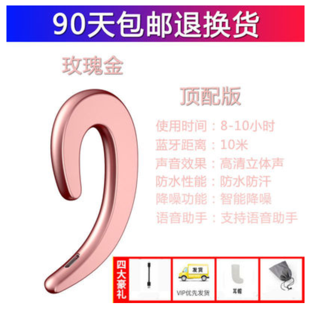 Wireless Bluetooth headset, ear-mounted, painless, single and double-ear, non-into-ear, bone conduction, vivo, Huawei, oppo, apple, universal