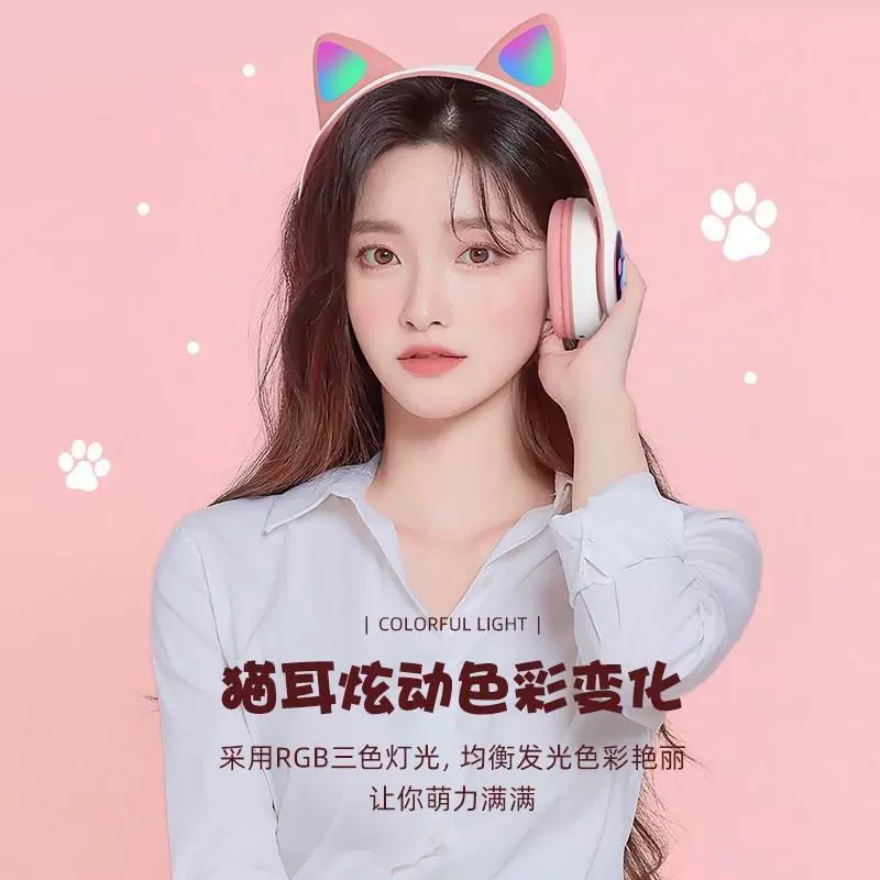 | nameOriginal | Wireless Bluetooth headset head-mounted cute compact notebook desktop computer suitable for Apple ipad Huawei anchor with microphone female student pink cat ear headset e-sports chicken game |