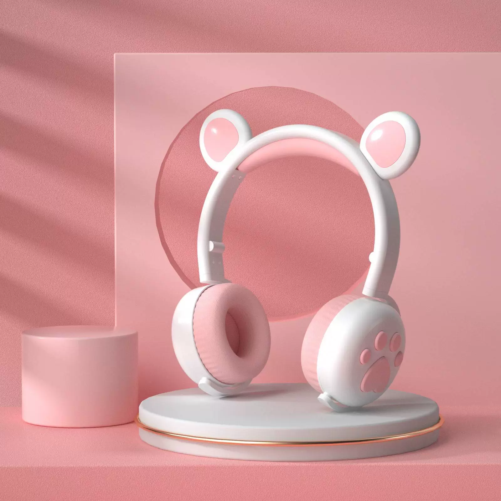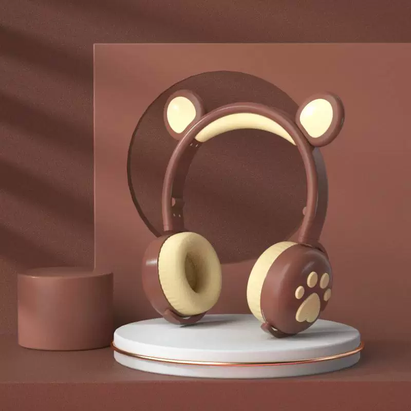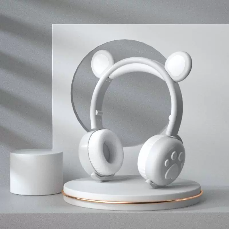 Wireless Bluetooth Headset New Girl Bear Series Luminous Ear Gaming Headset Macaron Head-Mounted Bluetooth Headset