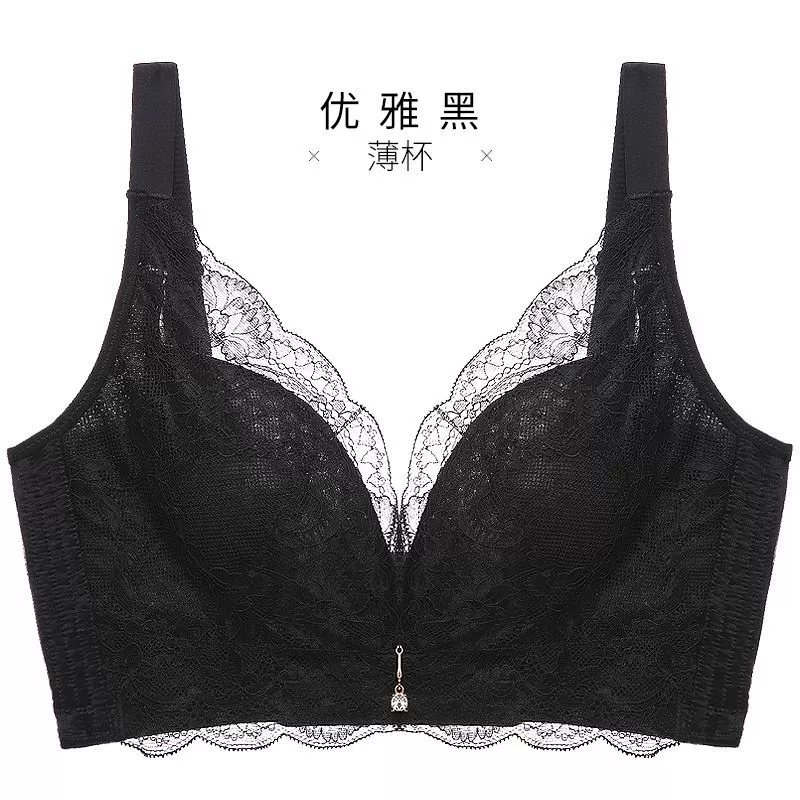 | nameOriginal | Wireless bra for fat girls, pure cotton, breathable gray and black lace |