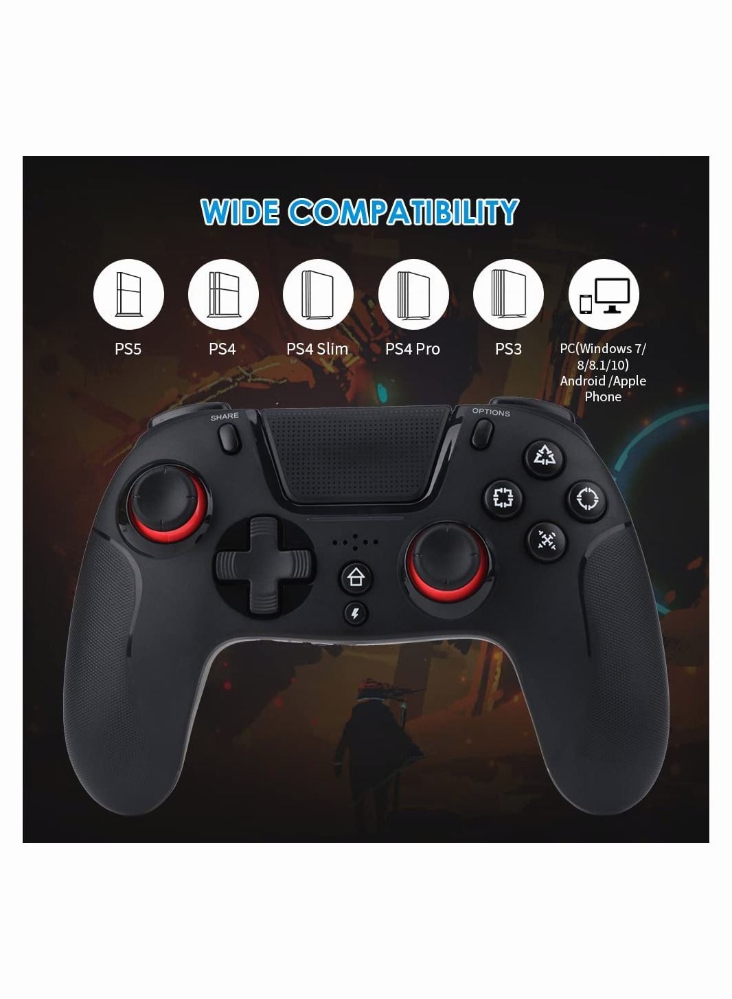 | nameOriginal | PS4 Controller, DualShock 4 Wireless Controller with 6-Axis Sensitive Joystick/Audio/Touchpad, Bluetooth Game Remote Compatible with PlayStation 4/Slim/Pro/PC |