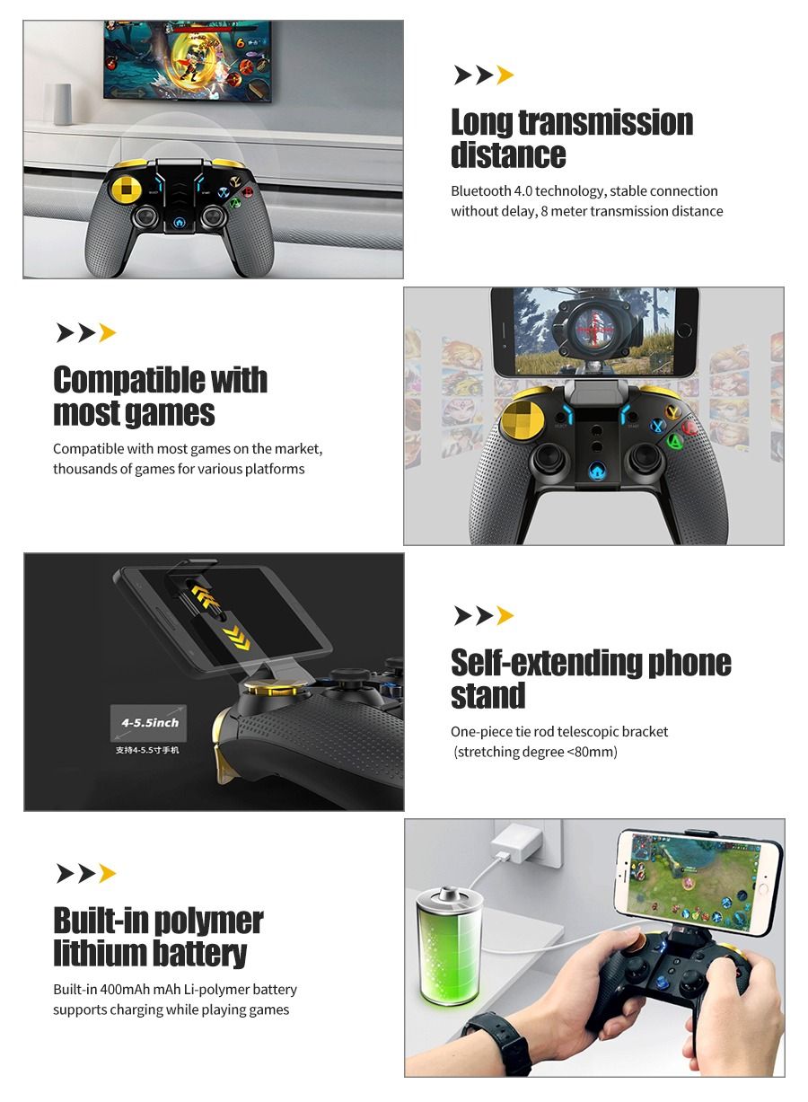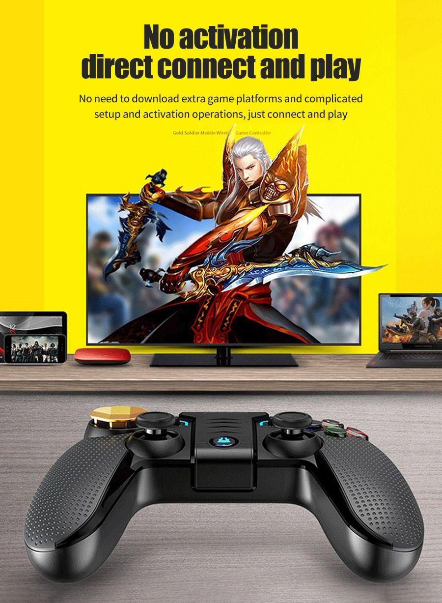 Introducing the New Wireless Gamepad Joystick Multimedia Game Controller, the ultimate gaming accessory for iOS iPhone and Android devices. This sleek and stylish black gamepad is designed to enhance your gaming experience with its advanced features and ergonomic design. With its wireless connectivity, you can enjoy gaming without the hassle of tangled wires. The gamepad is compatible with a wide range of games and multimedia applications, making it the perfect choice for gamers of all levels. The responsive joystick and buttons provide precise control, while the built-in rechargeable battery ensures long hours of uninterrupted gaming. Whether you’re a casual gamer or a hardcore enthusiast, the New Wireless Gamepad Joystick Multimedia Game Controller is the perfect addition to your gaming setup.