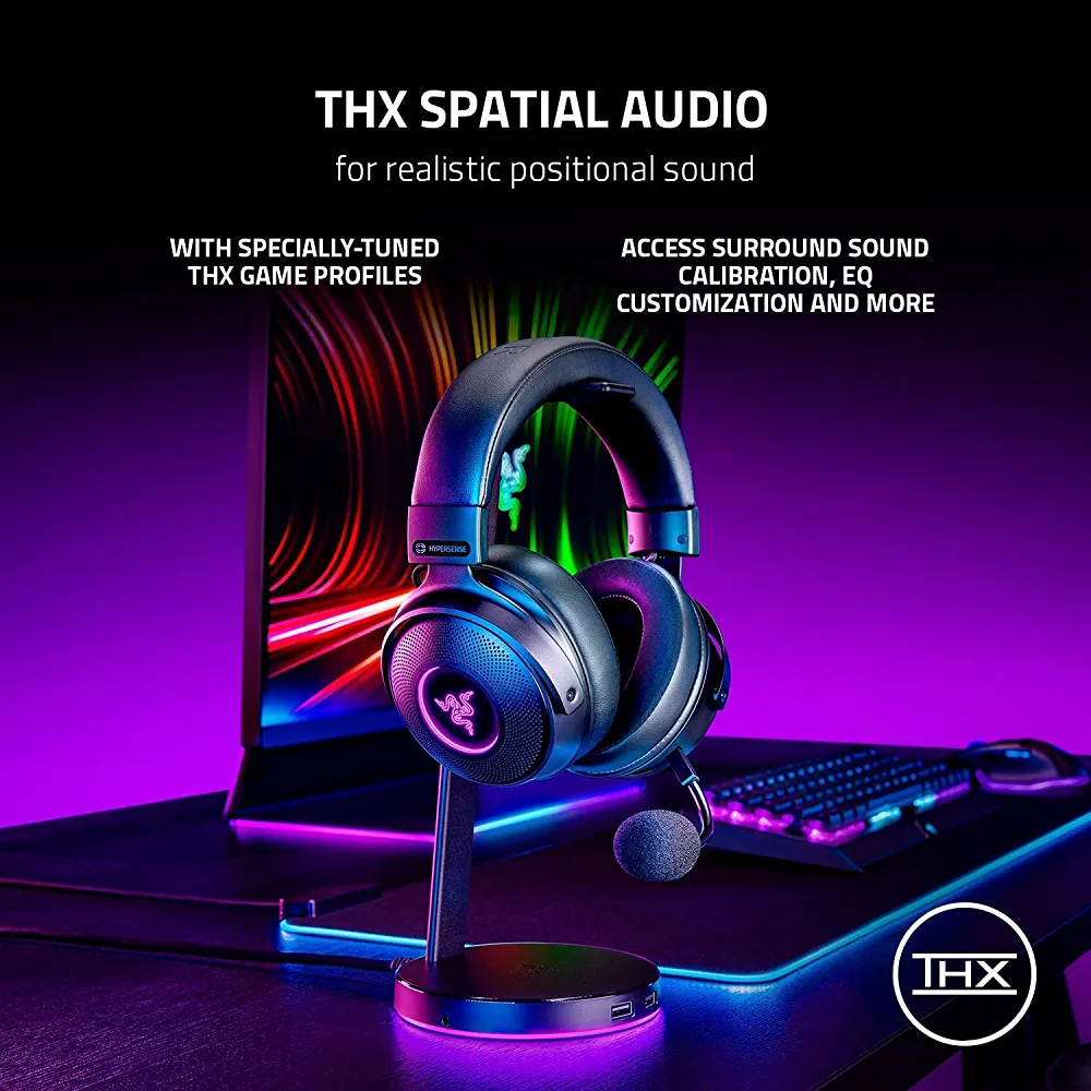 | nameOriginal | Razer Kraken V3 Pro HyperSense Wireless Gaming Headset w/Haptic Technology: Triforce Titanium 50mm Drivers – THX Spatial Audio – HyperSpeed Wireless – Hybrid Fabric & Leatherette Memory Foam Cushions |