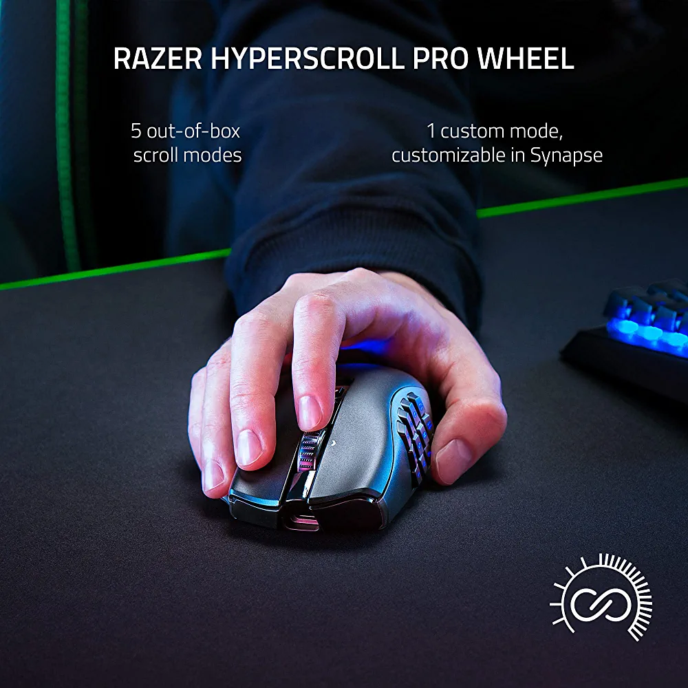 The Razer Naga V2 Pro is the ultimate gaming mouse that is built to excel in various genres such as MMO, Battle Royale, FPS, and more. This multi-genre master is back and better than ever with its powerful features. With 3 interchangeable side plates, 19+1 programmable buttons, a Razer HyperScroll Pro Wheel, and Razer HyperSpeed Wireless, you can dominate every game with ease.