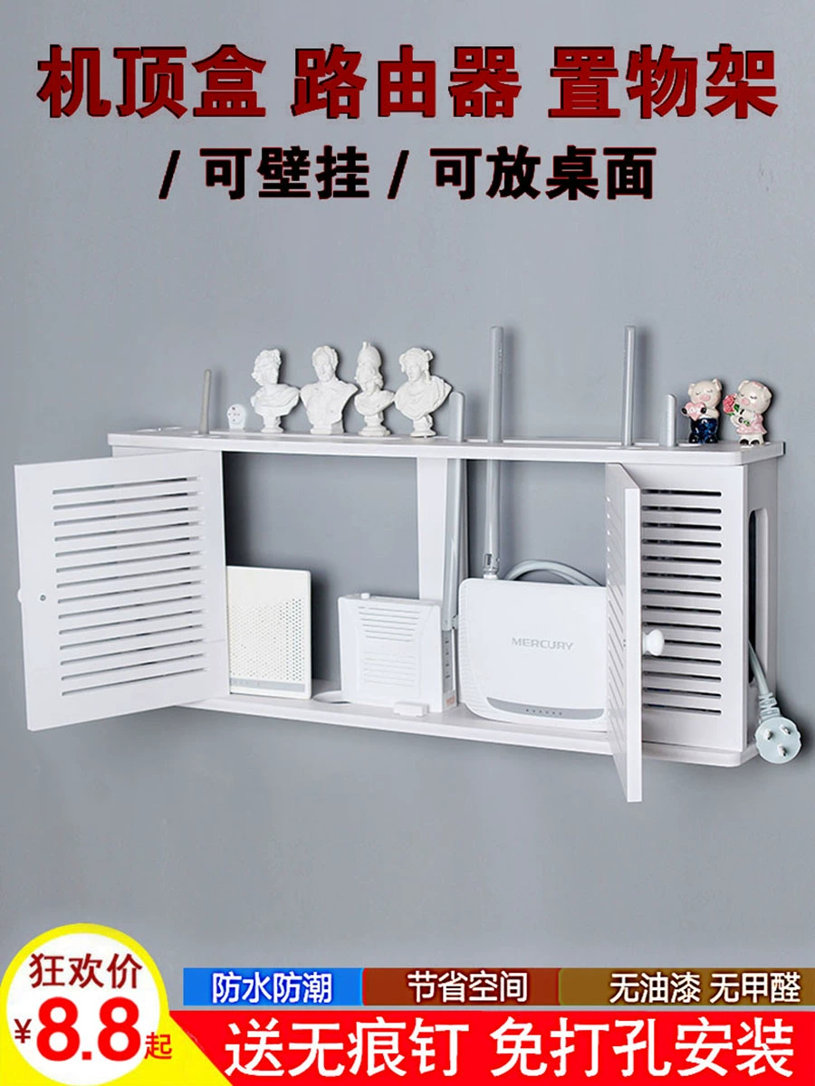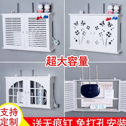 Wireless router storage box wifi wall-mounted decorative shielding box set-top box rack free of punching light cat desktop