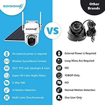 Our solar-powered surveillance camera is wire-free and comes with a built-in rechargeable battery and a 2.4GHz wireless WiFi antenna, making it easy to install without any additional costs.