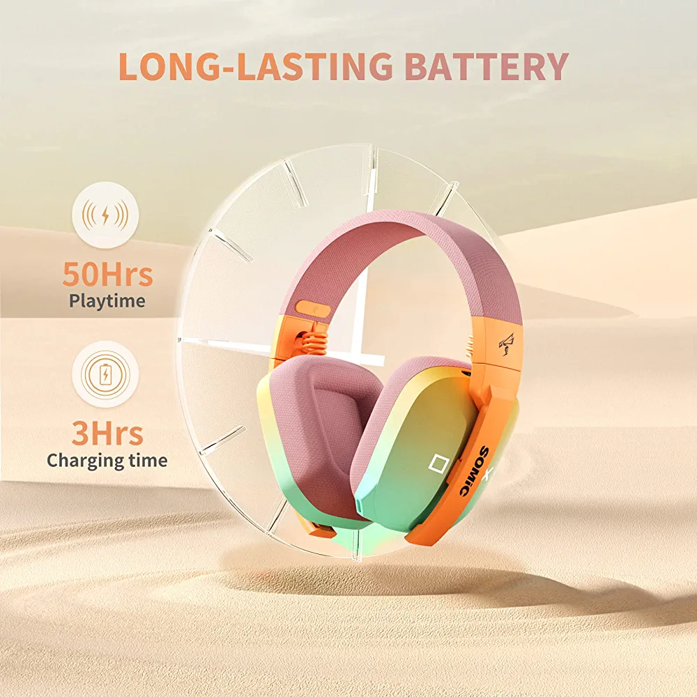The headset boasts an impressive 50-hour playtime, so you can enjoy uninterrupted gaming or music sessions without worrying about running out of battery. The RGB light adds a touch of style to your setup, while the foldable design makes it easy to store and transport.