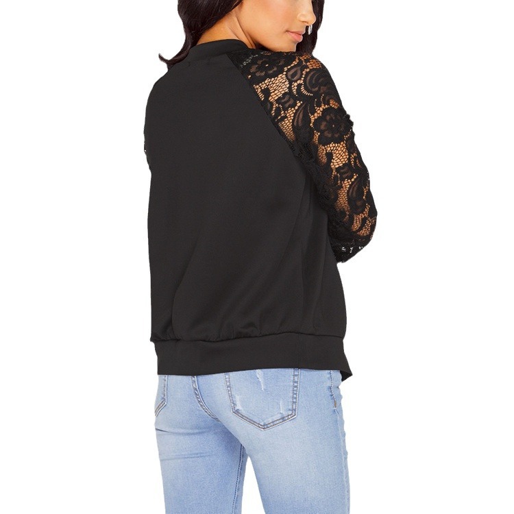 Wish AliExpress ebay autumn and winter foreign trade long sleeve lace stitching zipper small coat jacket spot