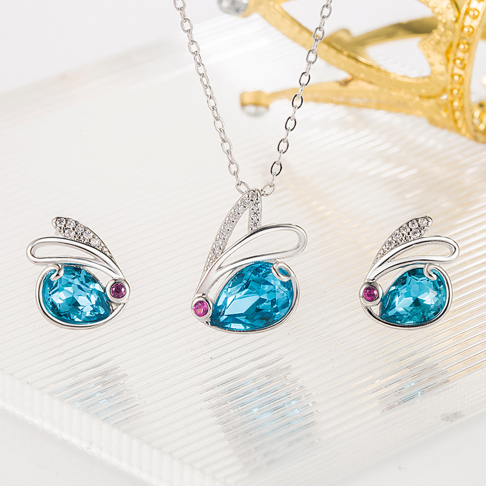 | nameOriginal | wish Cross-border Hot Selling Cute Funny Rabbit Pendant Necklace Set Female Personalized Rabbit Earrings Blue Crystal Necklace |