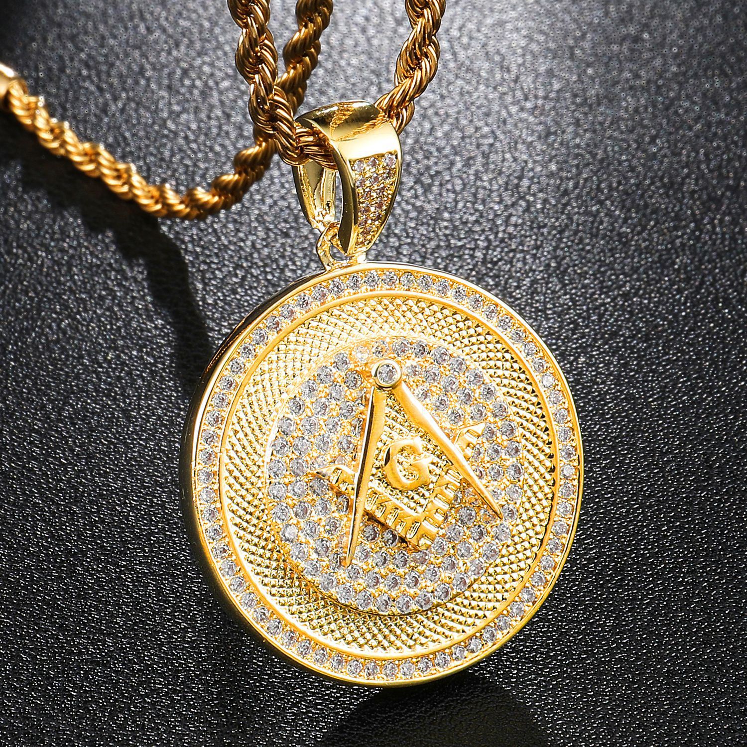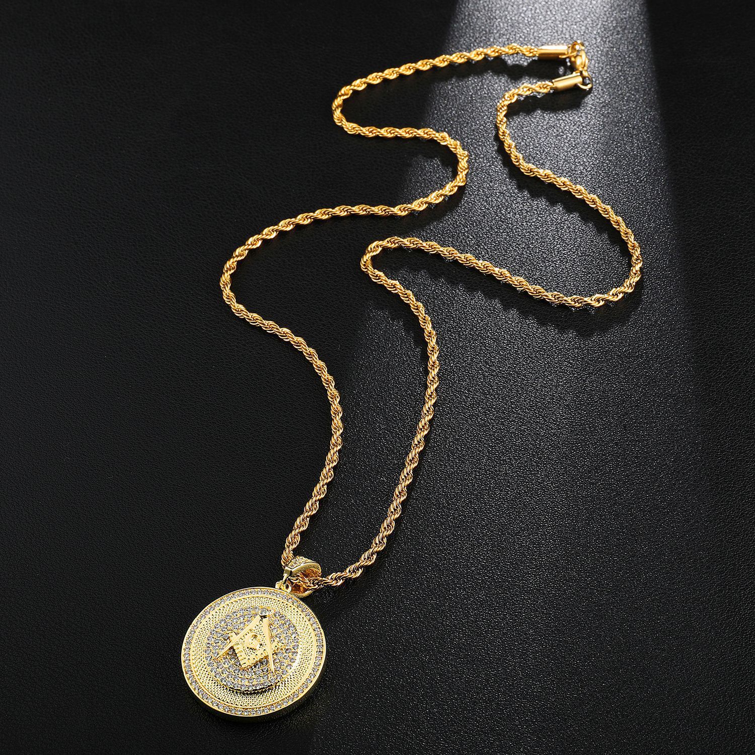 | nameOriginal | wish Cross-border Hot Selling European and American Fashion Brand Hip Hop with Zircon Gold Masonic Pendant Necklace |