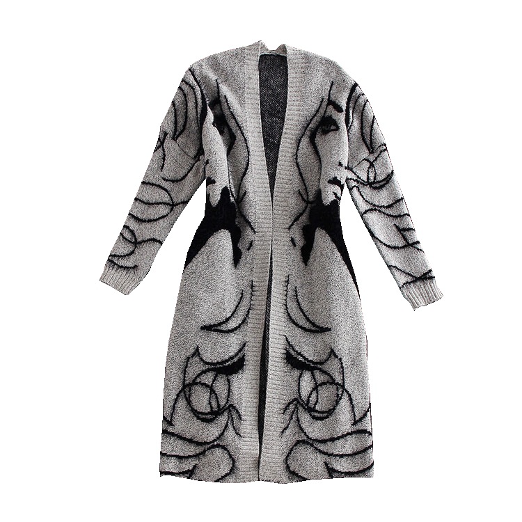| nameOriginal | wish European and American Autumn and Winter New Korean Style Mid-length Knitted Cardigan Women's Head Embroidered Large Size Loose Sweater Jacket |