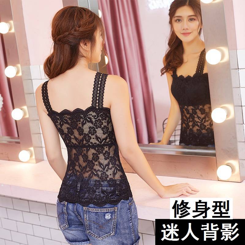 With chest pad [35.00 kg-75.00 kg] lace sexy vest bottoming shirt Women's Korean-style sling hollow-out bottoming vest