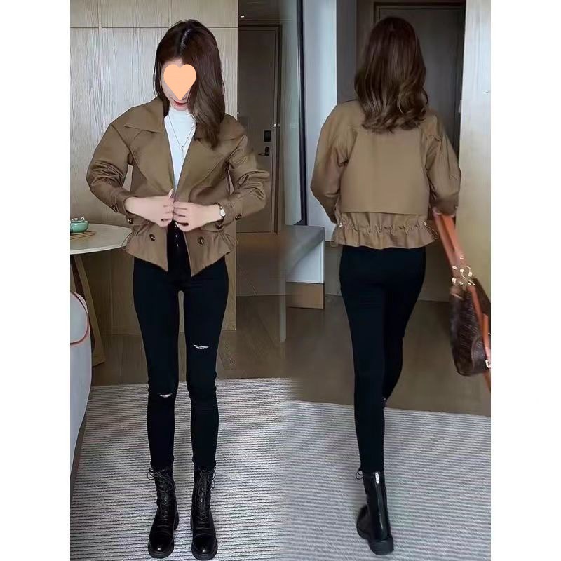 [With lining] short coat for women 2024 Spring and Autumn New lapel double-breasted fashion elegant casual women's coat