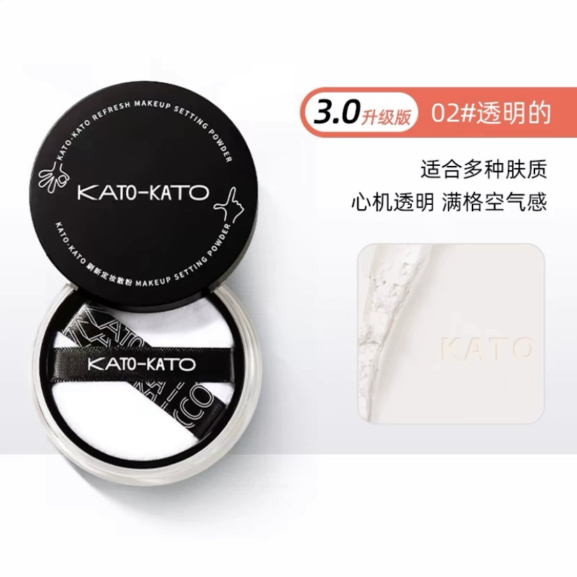 | nameOriginal | With powder puff, the new version of kato loose powder is oil-controlling, long-lasting, matte, and makes-up. The matte surface is waterproof, sweat-proof, non-removing, and long-lasting. |