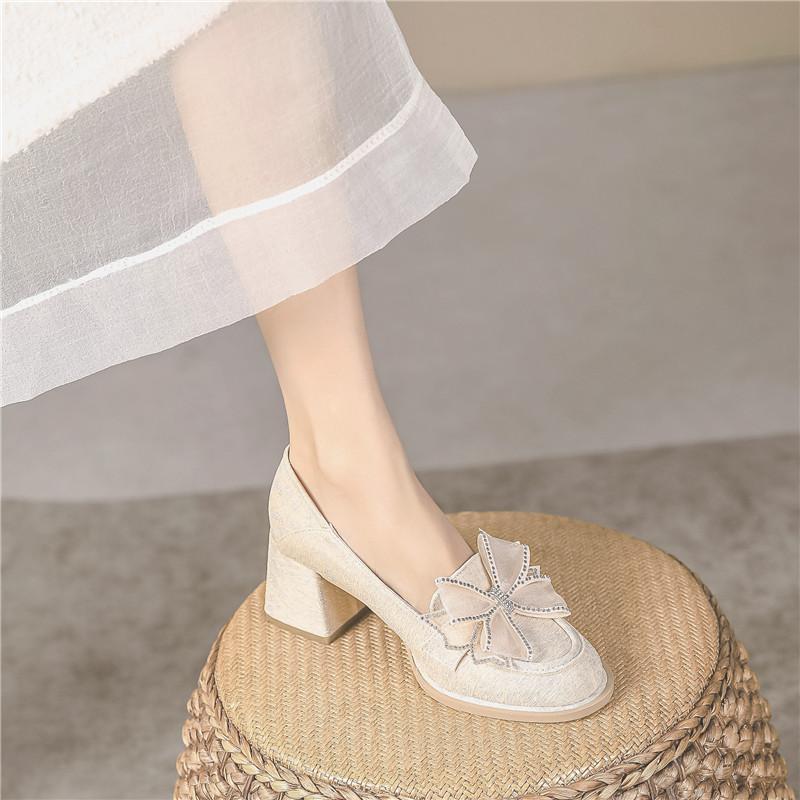 With skirt single-layer shoes women's 2024 new thick heel fairy gentle style French high heels bridesmaid shoes not tired feet small size