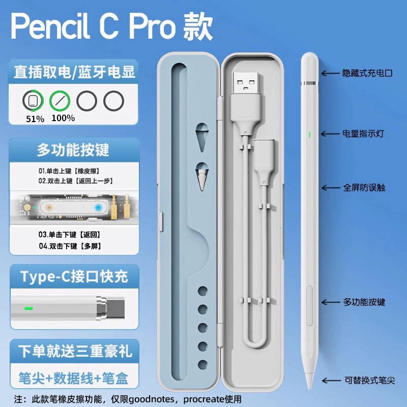 wiwu capacitive pen tablet pencil anti-accidental touch suitable for ipad9 tablet pen 10 touch screen pen ipencil first generation second generation pen air5 flat replacement 6 touch stylus pro magnetic charging