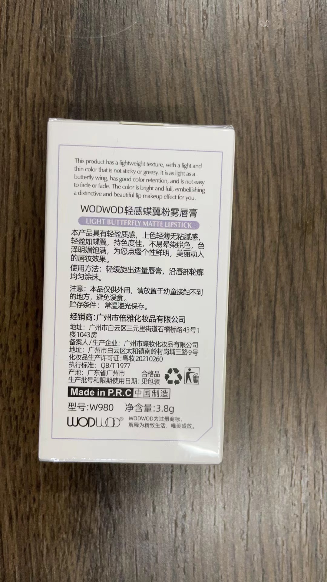 WODWOD light feeling butterfly wing pink mist lipstick velvet matte waterproof non-stick cup daily fake plain lipstick