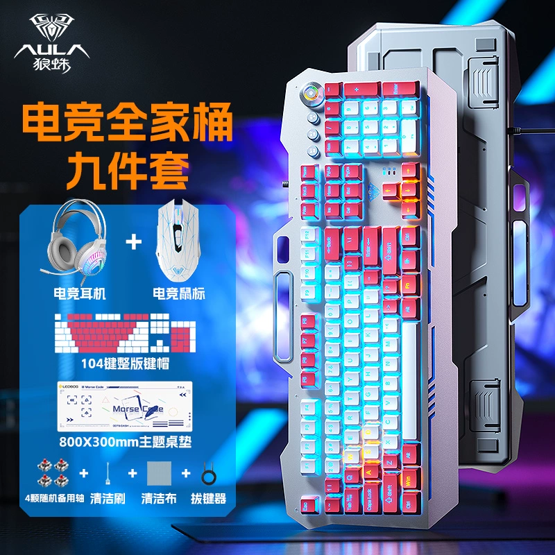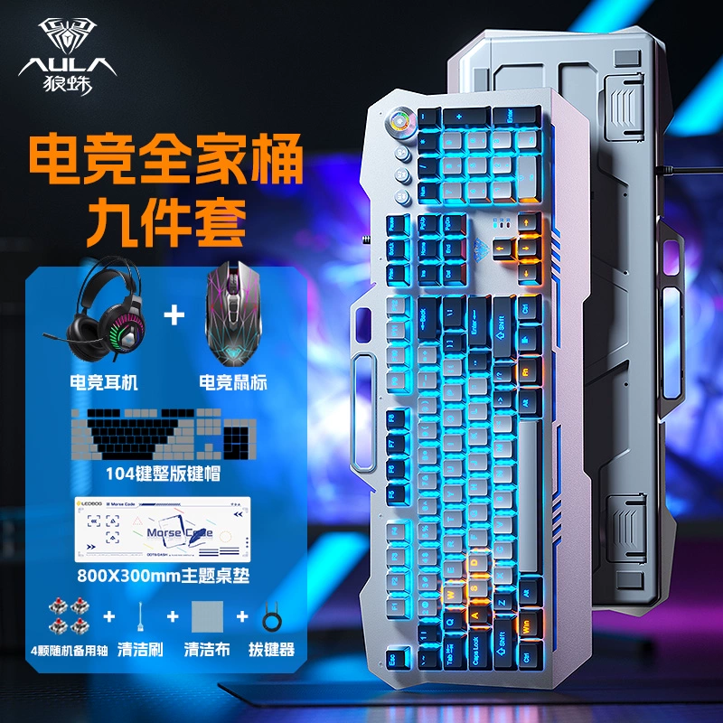 | nameOriginal | Wolf Spider Reaper mechanical keyboard and mouse set green tea red axis e-sports family bucket desktop computer game office |