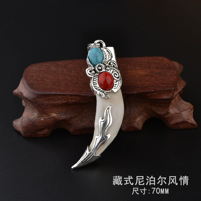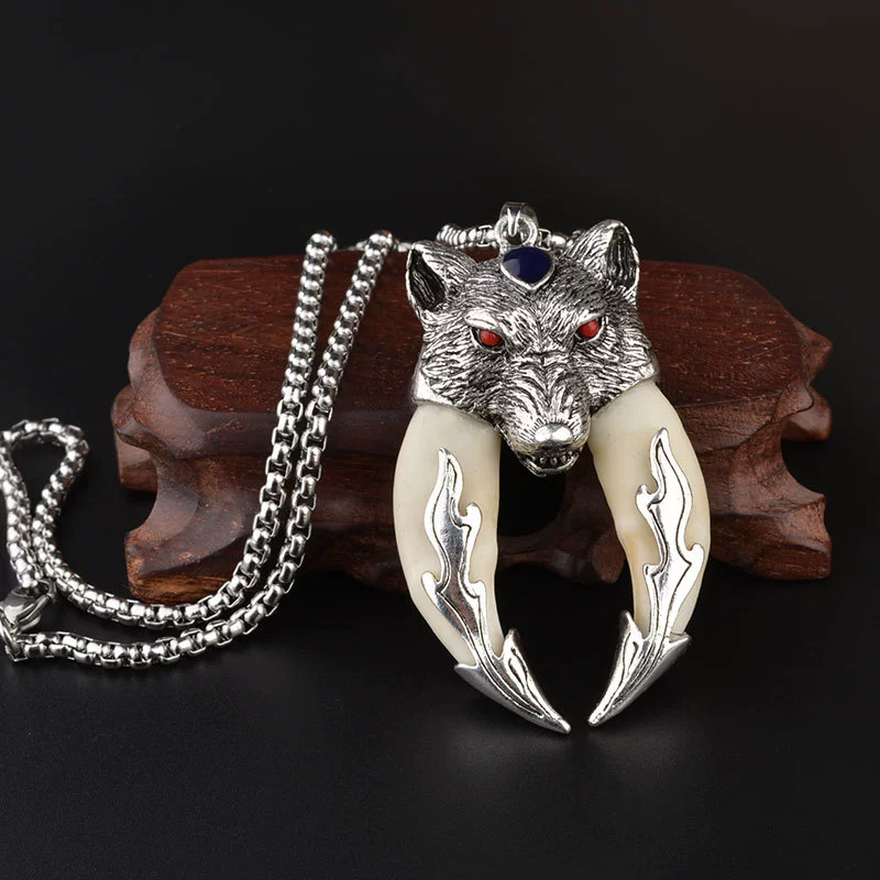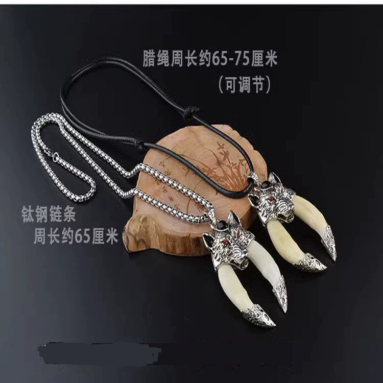 | nameOriginal | Wolf tooth pendant men's domineering real black dog tooth necklace bag silver tooth tip set retro accessories sweater chain pendant for women |