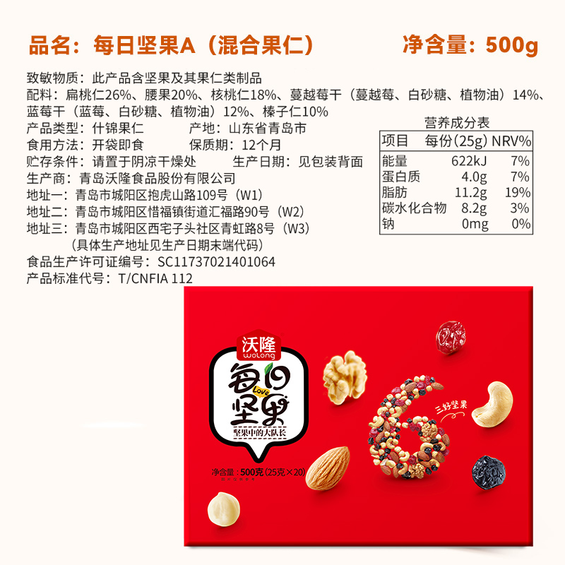| nameOriginal | Wolong daily nut gift box 500g gift mixed dried nuts adult children snack gift bag Small Package 25 |