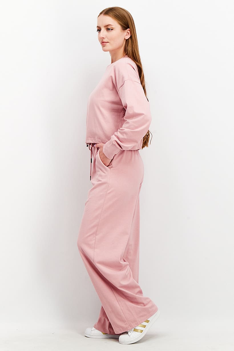 Women Clothing, Sportswear, women 2 pc sport fit plain classic sweatshirt and jogger pants set ash pink