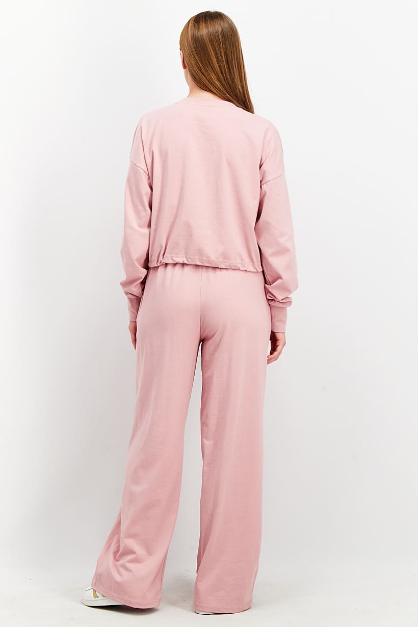 Women 2 Pc Sport Fit Plain Classic Sweatshirt And Jogger Pants Set, Ash Pink