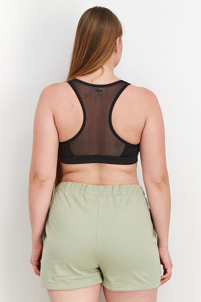 Care : Machine washable, Fit : Sportswear Fit, Ideal For : Women, Size shown : US, Thickness : Light, Type of Sport : Training, Disclaimer : No returns accepted on lingerie, socks, undergarments and swimwear due to hygiene reasons., Fabrics : 89% Polyester, 11% Elastane, Occasion : Sport, Pattern & Print : Brand Logo, Sportswear Type : Sports Bra, Types of Closures : Pullover, Color Family : Black,