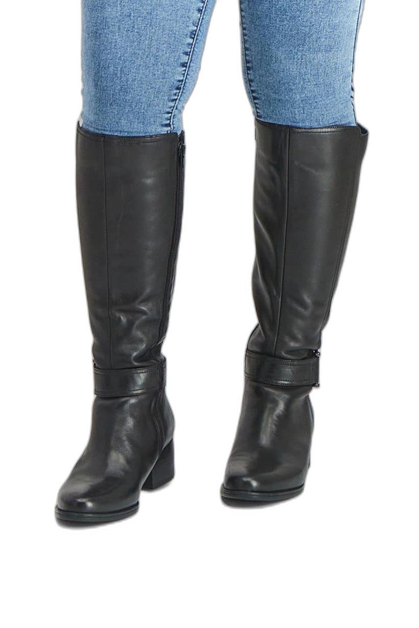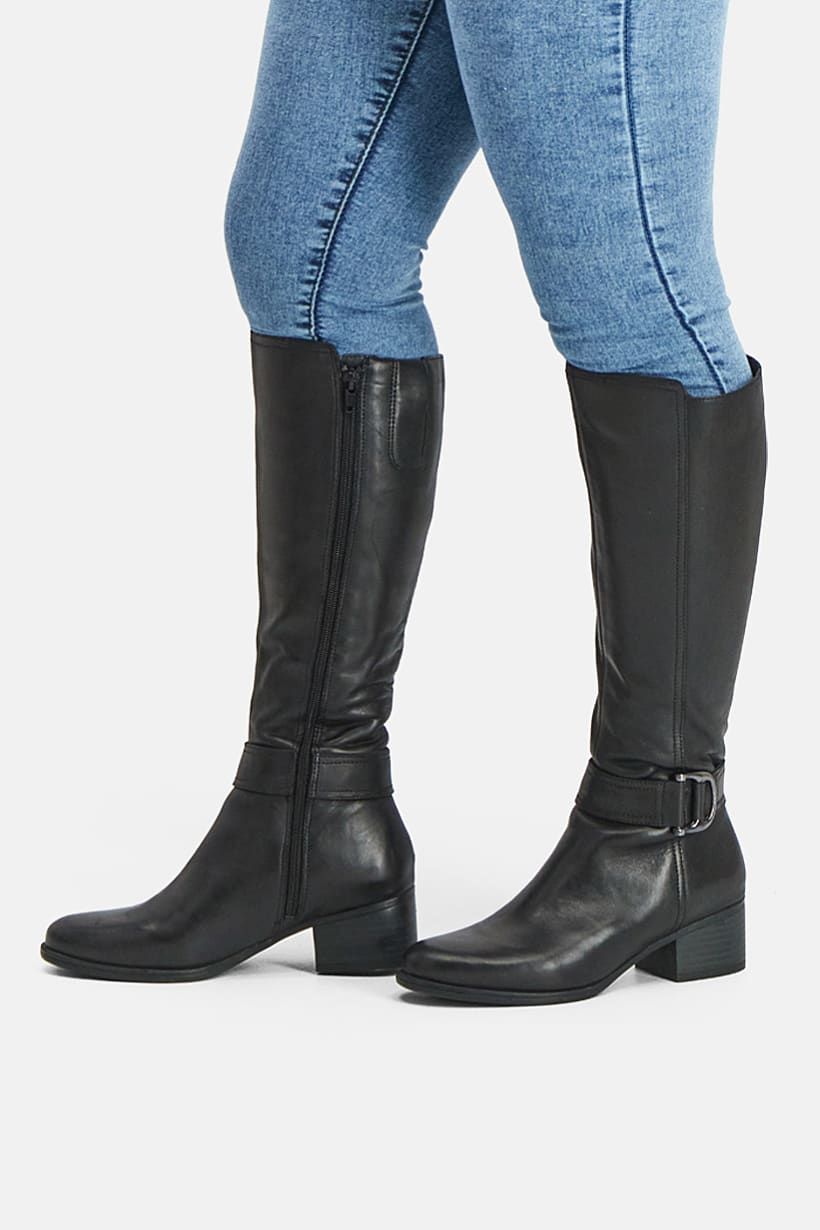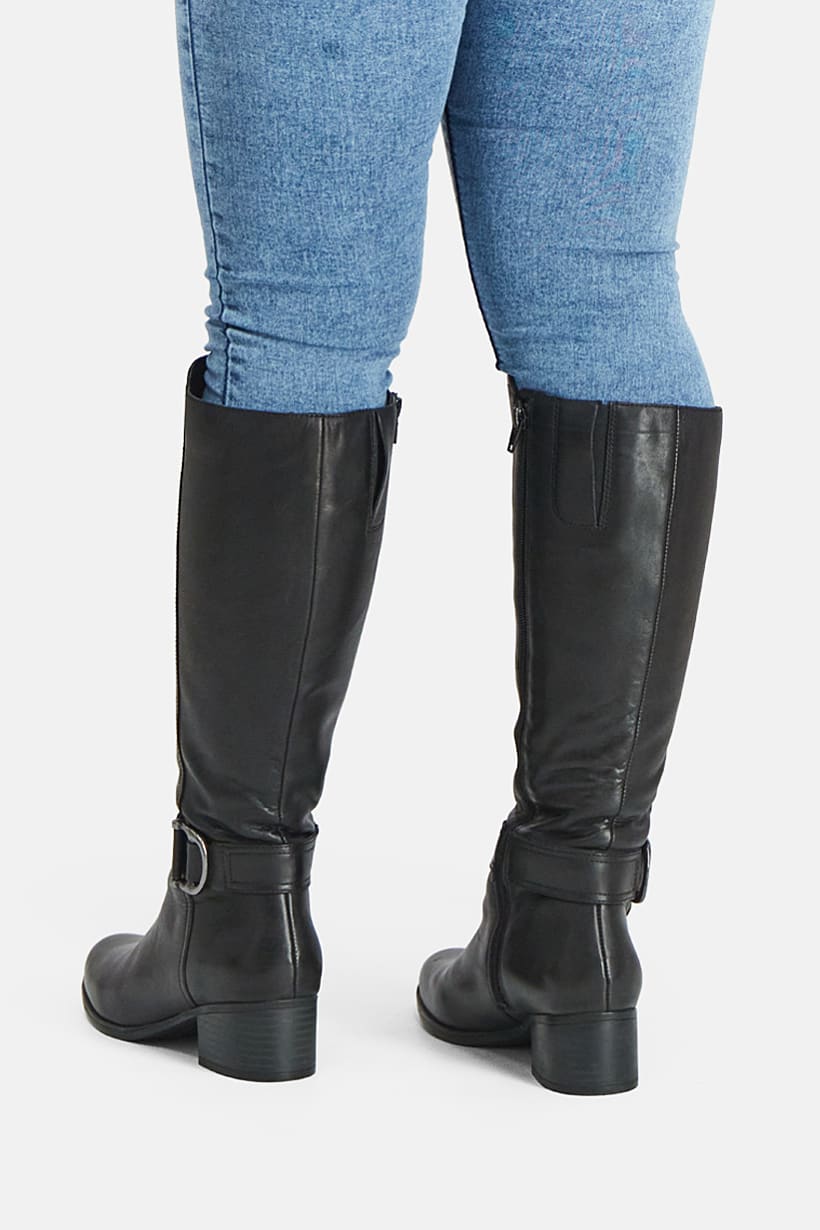 Heel Height : 2" / 5 cm, Heel Style : Block heel, Ideal For : Women, Shoe Closure : Zipper closure, Shoe Width : Wide, Sole Material : Synthetic sole, Style : Knee-length boot, Toe Style : Almond toe, Disclaimer : Product color may slightly vary due to photographic lighting sources or your monitor settings., Occasion : Casual, Shoe Material : Synthetic Leather, Color Family : Black,