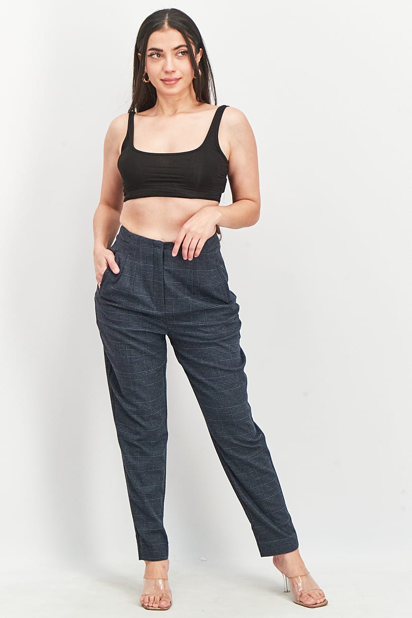 | sub_Categories | Women Clothing, Pants, women regular fit plaid side pocket pants navy black |
