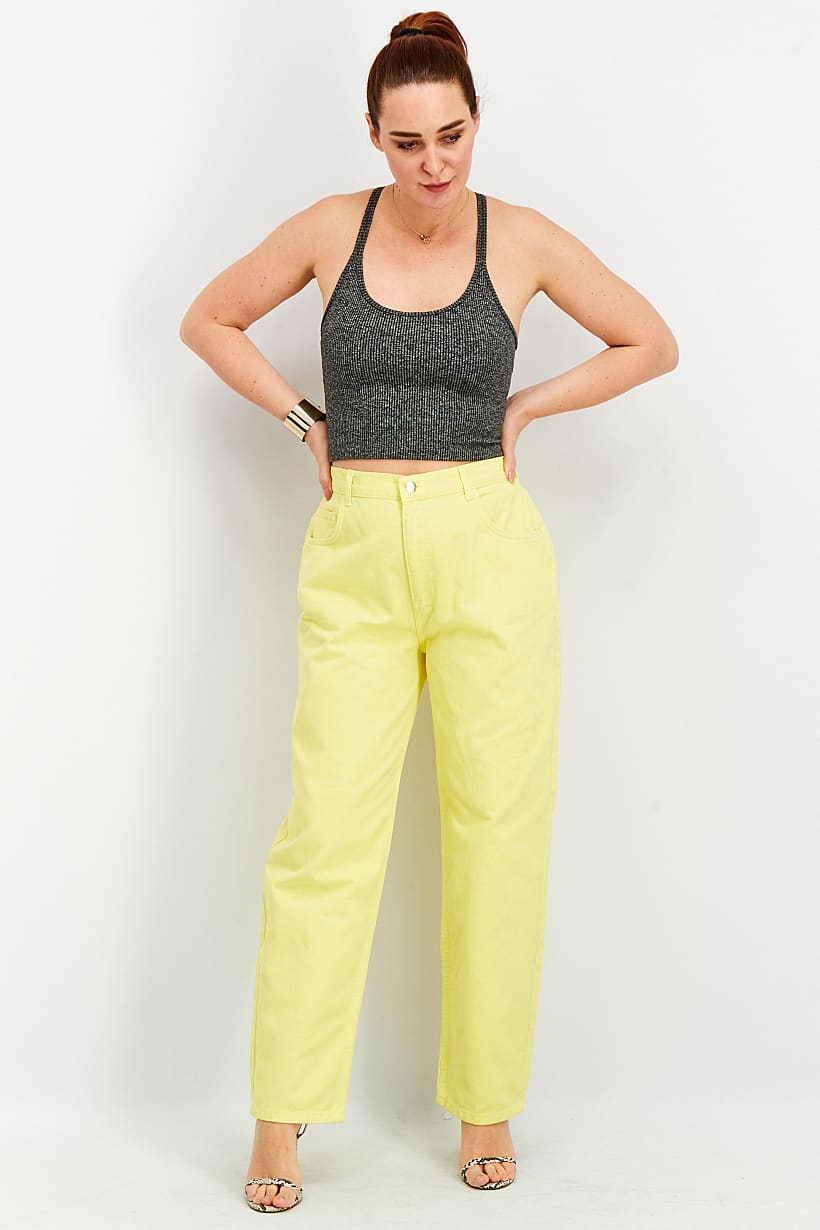 Bottom Hem : Straight, Care : Machine washable, Fit : Regular fit, Ideal For : Women, Leg Style : Regular, Size shown : Inches, Stretch Type : No stretch, Bottom Closure : Button, Bottom Style/Pattern : Five pocket style, Disclaimer : Product color may slightly vary due to photographic lighting sources or your monitor settings., Fabrics : 100% Cotton, Occasion : Casual, Pattern & Print : Plain/Solid, Color Family : Yellow,