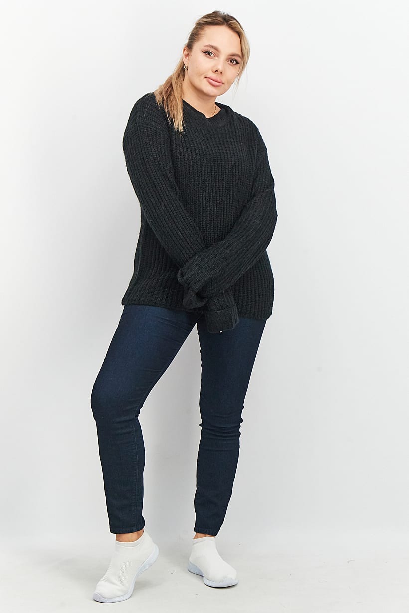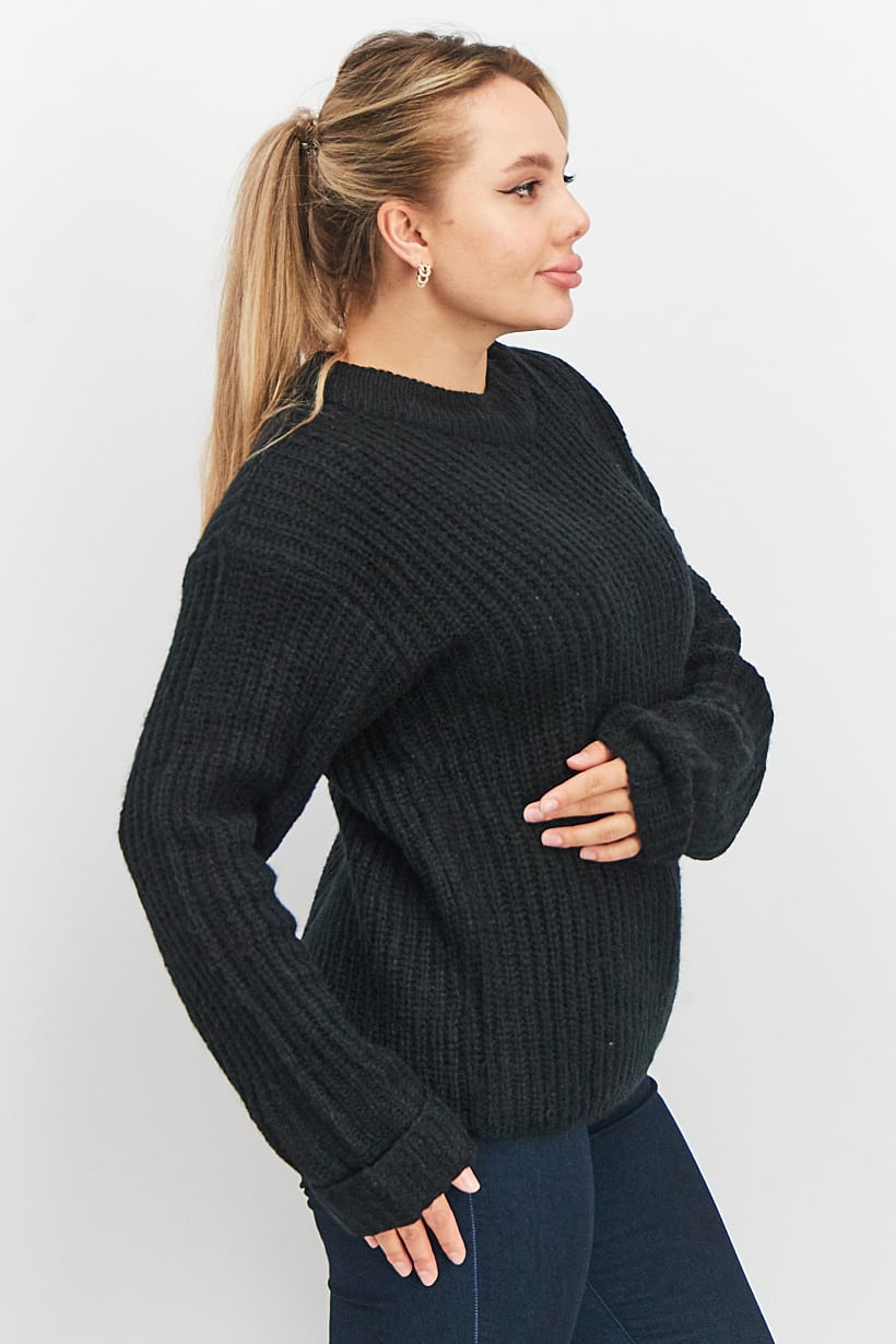 | nameOriginal | Women Round Neck Long Sleeve Knitted Sweater, Black |