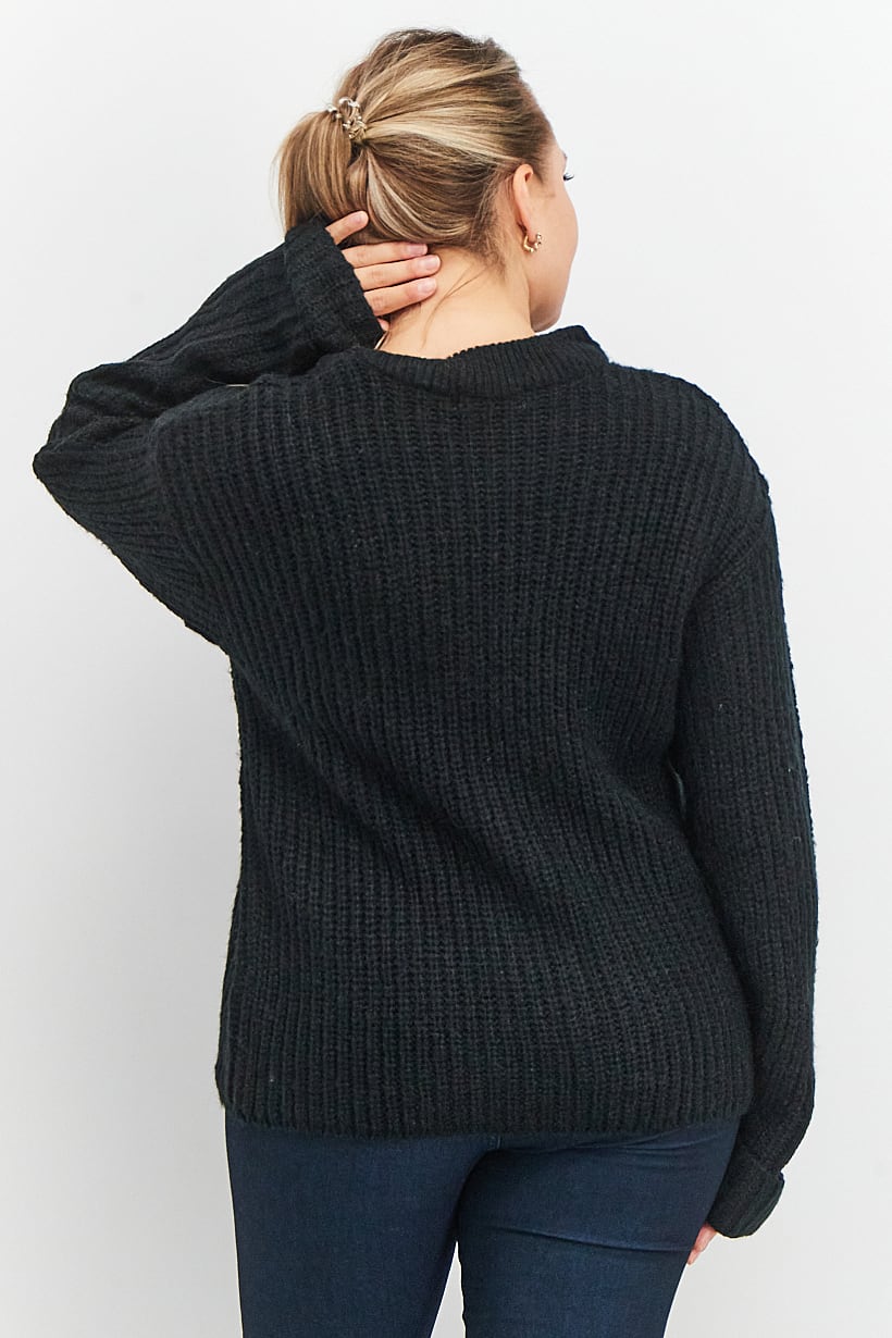 Care : Machine washable, Ideal For : Women, Size shown : International, Sleeve Length : Long Sleeve, Sweater Style : Sweaters, Thickness : Medium, Types of Hem : Straight hem, Types of Neckline & Collar : Round neckline, Types of Sleeve : Longsleeve, Disclaimer : Product color may slightly vary due to photographic lighting sources or your monitor settings., Fabrics : 85% Acrylic, 15% Polyamide, Occasion : Casual, Pattern & Print : Textured pattern, Types of Closures : Pullover, Color Family : Black,