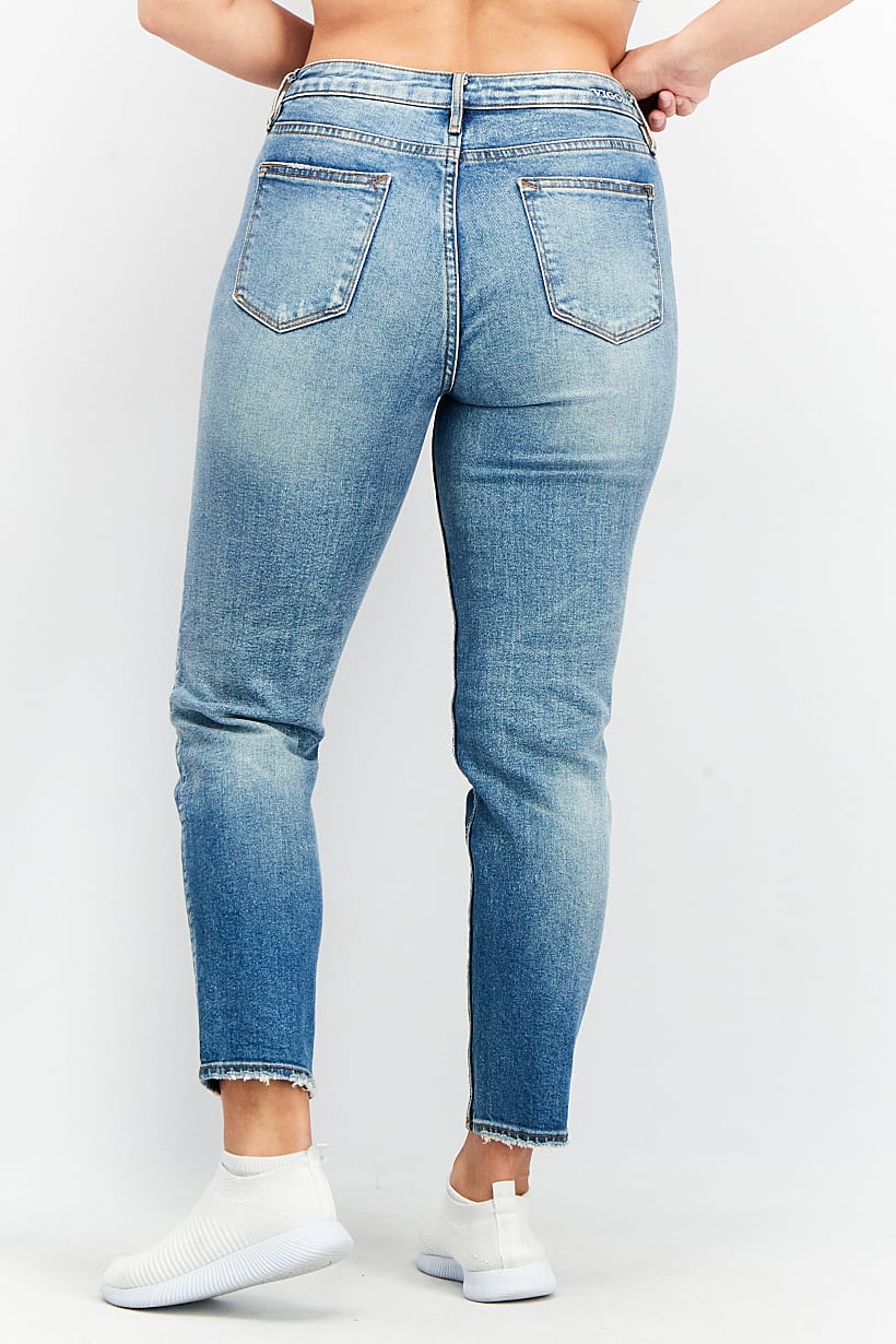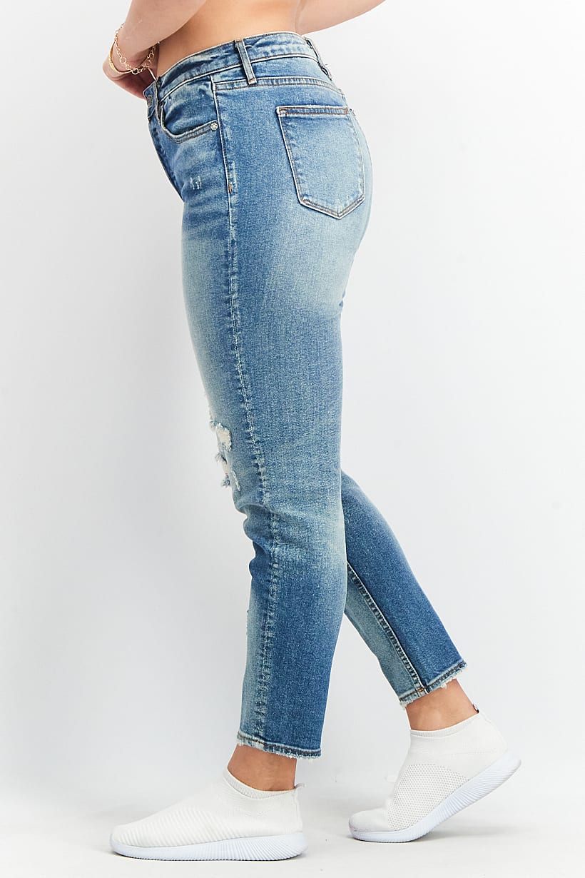 Bottom Hem : Straight, Care : Machine washable, Fit : Slim fit, Ideal For : Women, Leg Style : Slim, Size shown : Inches, Stretch Type : No stretch, Bottom Closure : Button fly, Bottom Style/Pattern : Five pocket style, Belt loops, Disclaimer : Product color may slightly vary due to photographic lighting sources or your monitor settings., Fabrics : 99% Cotton, 1% Spandex, Occasion : Casual, Pattern & Print : Rip, Color Family : Blue, Pattern & Print : Washed,