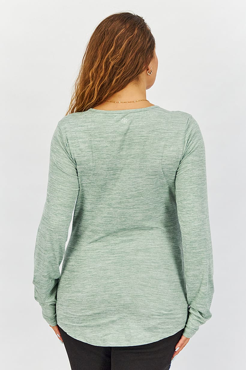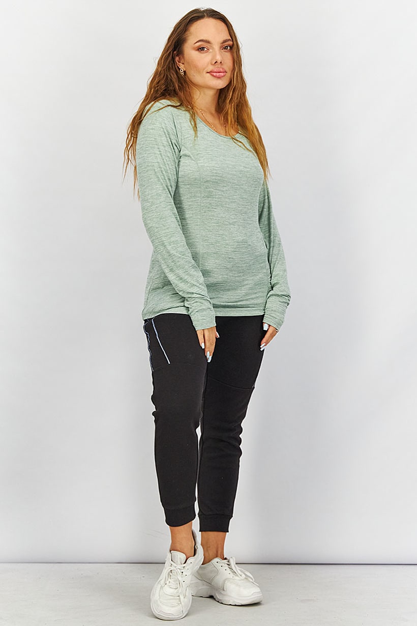 Bottom Hem : Straight, Care : Machine washable, Fit : Slim fit, Size shown : International, Sleeve Length : Long Sleeve, Thickness : Light, Type of Sport : Yoga, Types of Neckline & Collar : Round neckline, Disclaimer : Product color may slightly vary due to photographic lighting sources or your monitor settings., Fabrics : 94% Polyester, 6% Elastane, Occasion : Sport, Pattern & Print : Heather, Sportswear Type : Tops, Types of Closures : Pullover, Color Family : Green,