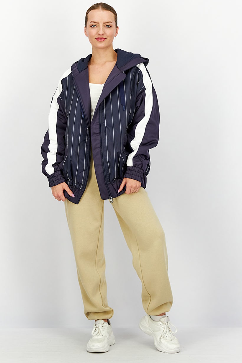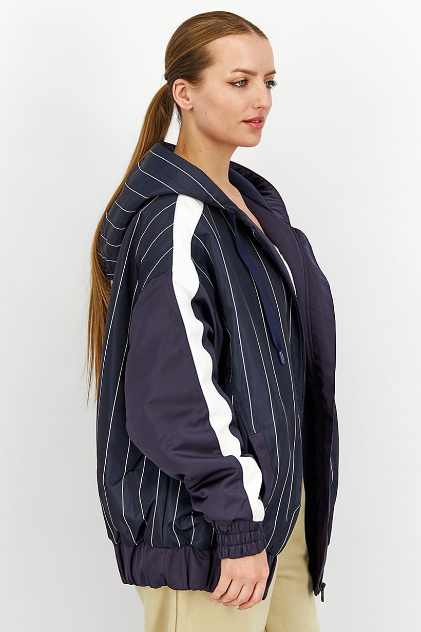 | nameOriginal | Women Sports Fit Hooded Stripe Bomber Jacket, Navy Blue |