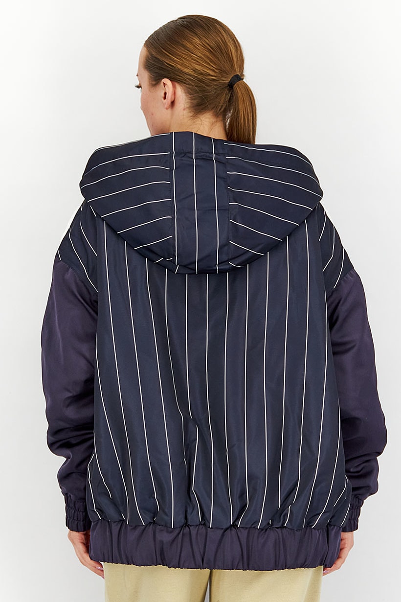 Care : Machine washable, Size shown : International, Sleeve Length : Long Sleeve, Thickness : Medium, Types of Neckline & Collar : Hood, Disclaimer : Product color may slightly vary due to photographic lighting sources or your monitor settings., Fabrics : 100% Polyester, Pattern & Print : Stripe, Types of Closures : Zipper closure, Color Family : Navy Blue, Types of Hem : Straight hem, Ideal For : Women, Occasion : Sport, Fit : Sportswear Fit, Sportswear Type : Hoodies, Type of Sport : Outdoors,