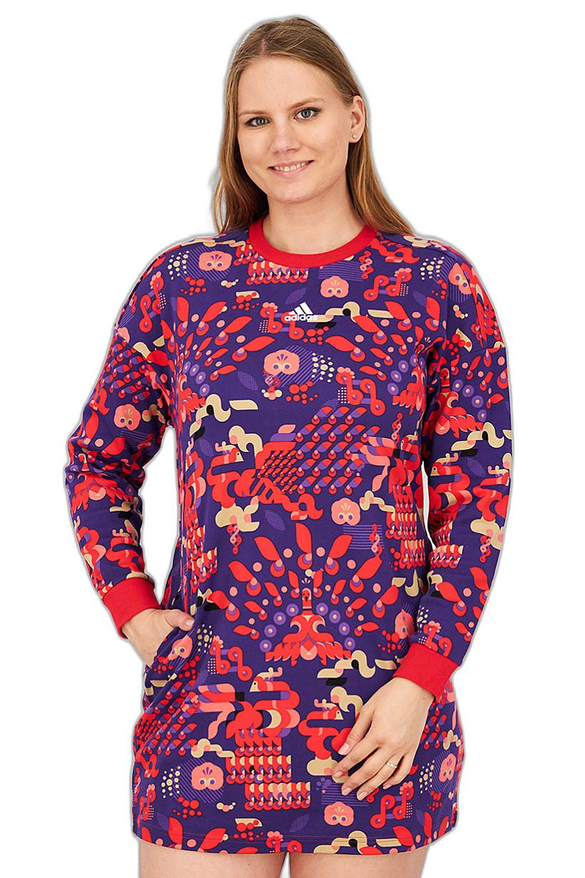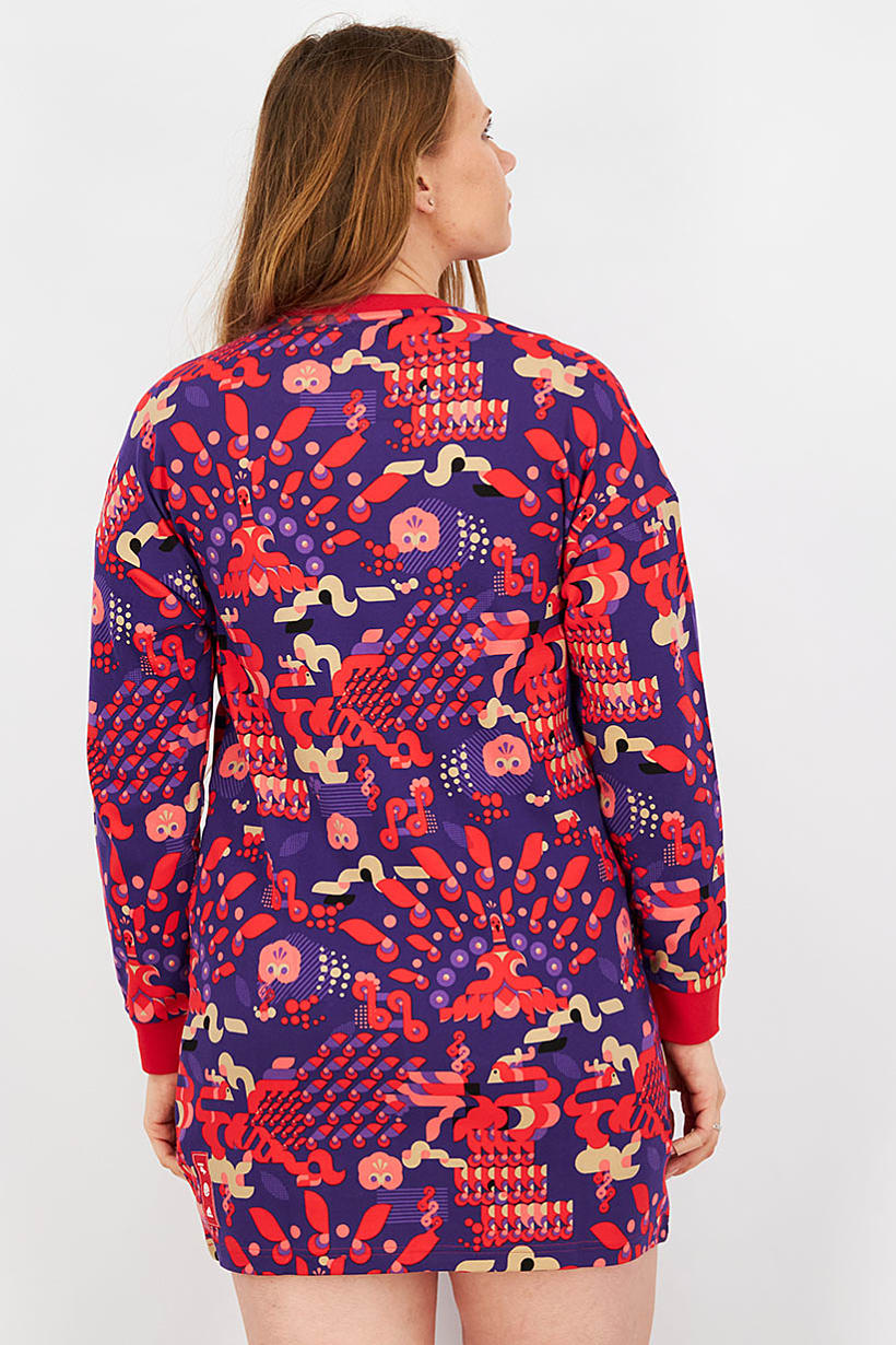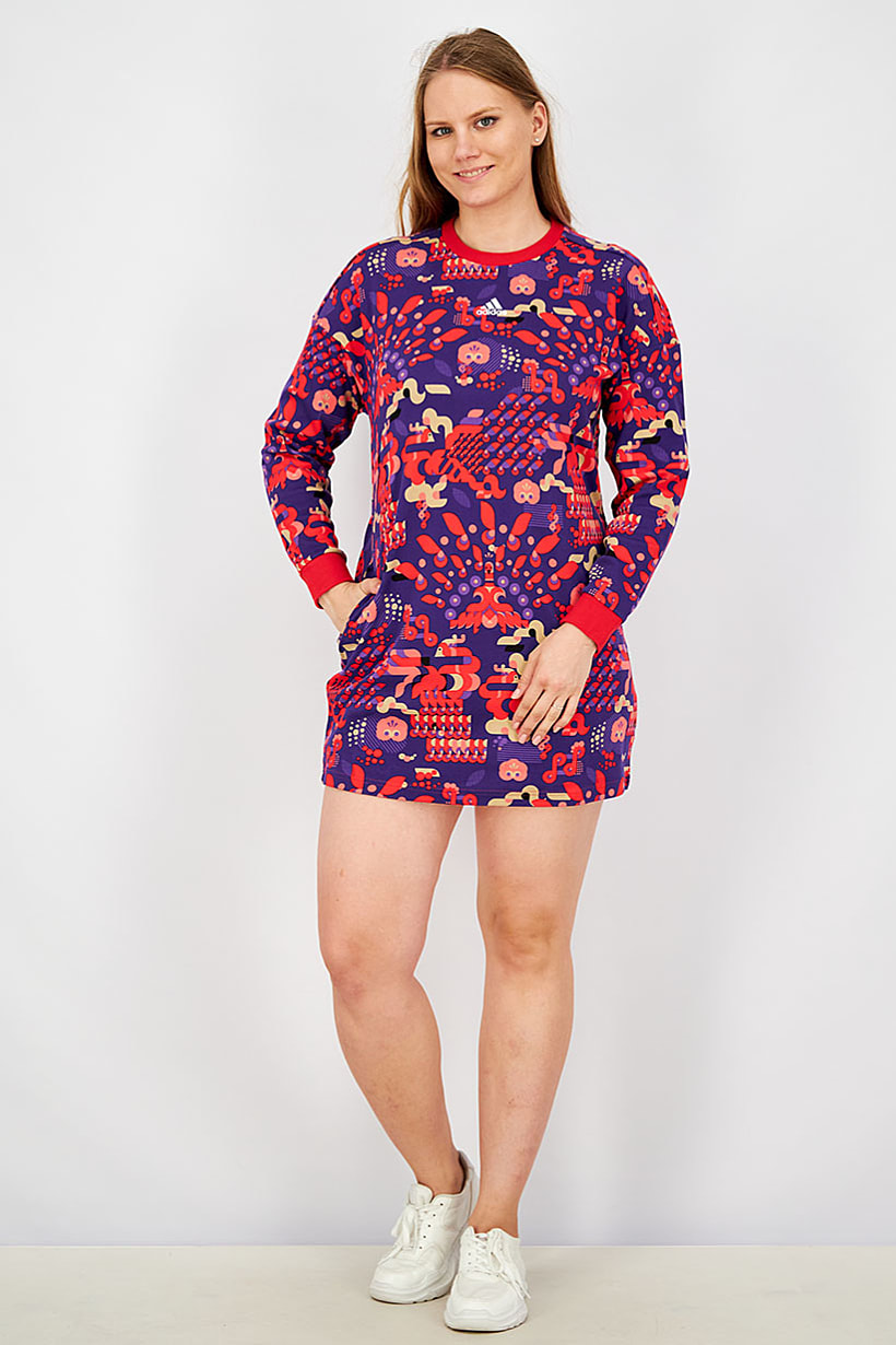 | nameOriginal | Women Sportswear Fit Allover Print Sweater Dress, Purple Combo |