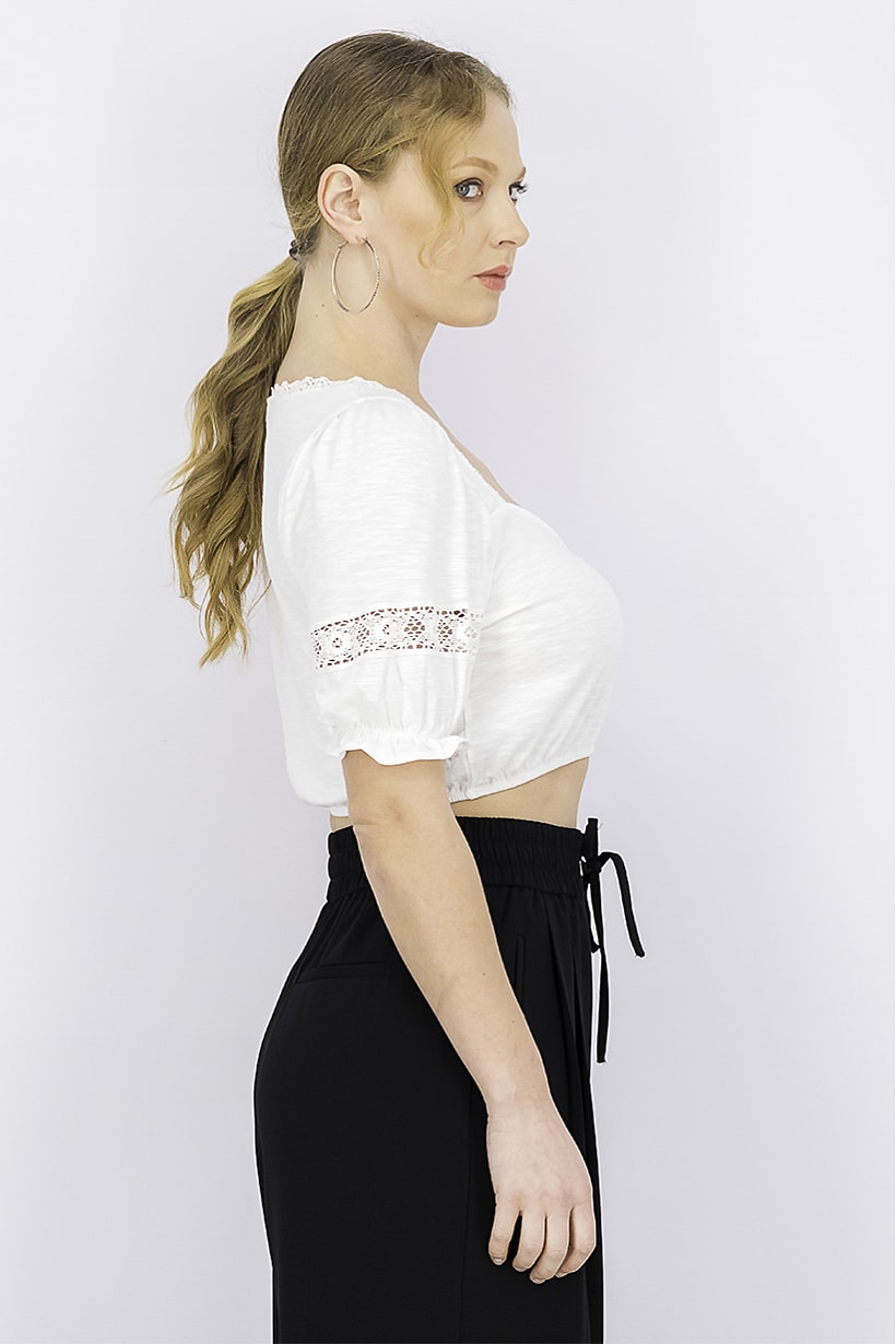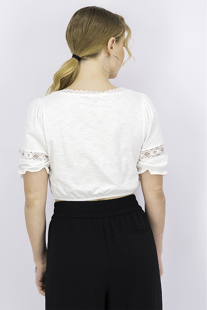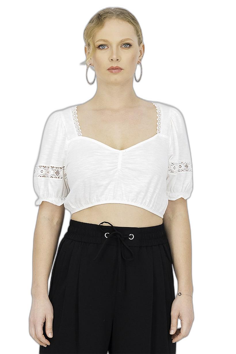 | sub_Categories | Women Clothing, Tops & Tees, women sweetheart neck elbow sleeve lacedetail top ivory |