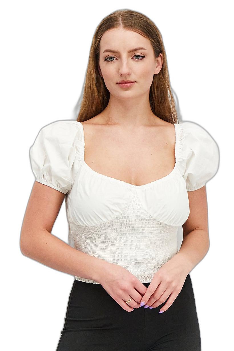 | sub_Categories | Women Clothing, Tops & Tees, women sweetheart neckline puffed sleeve woven top white |