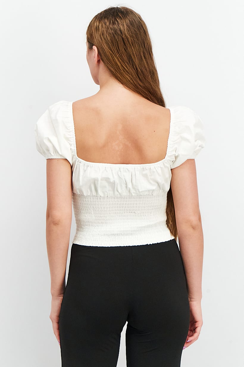 | nameOriginal | Women Sweetheart Neckline Puffed Sleeve Woven Top, White |