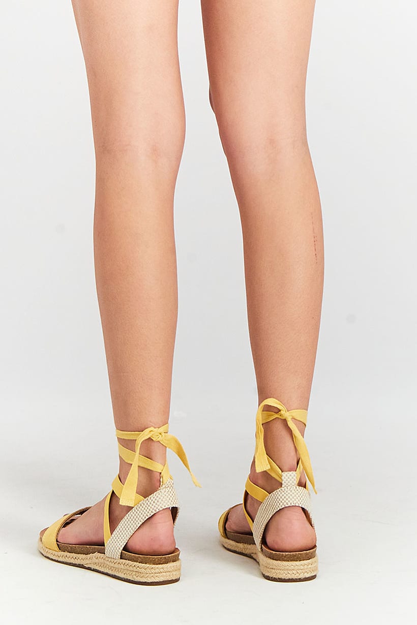 Heel Height : 0.39″ / 1 cm, Heel Style : No heel, Ideal For : Women, Shoe Closure : Tie closure, Sole Material : Synthetic sole, Toe Style : Open toe, Disclaimer : Product color may slightly vary due to photographic lighting sources or your monitor settings., Occasion : Casual, Pattern & Print : Textured pattern, Shoe Material : Textile, Color Family : Yellow,