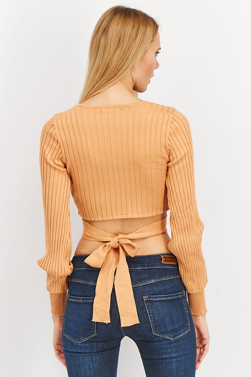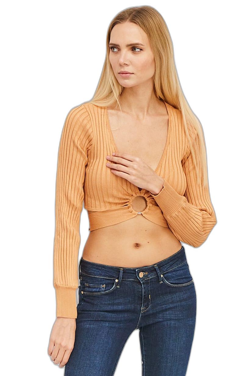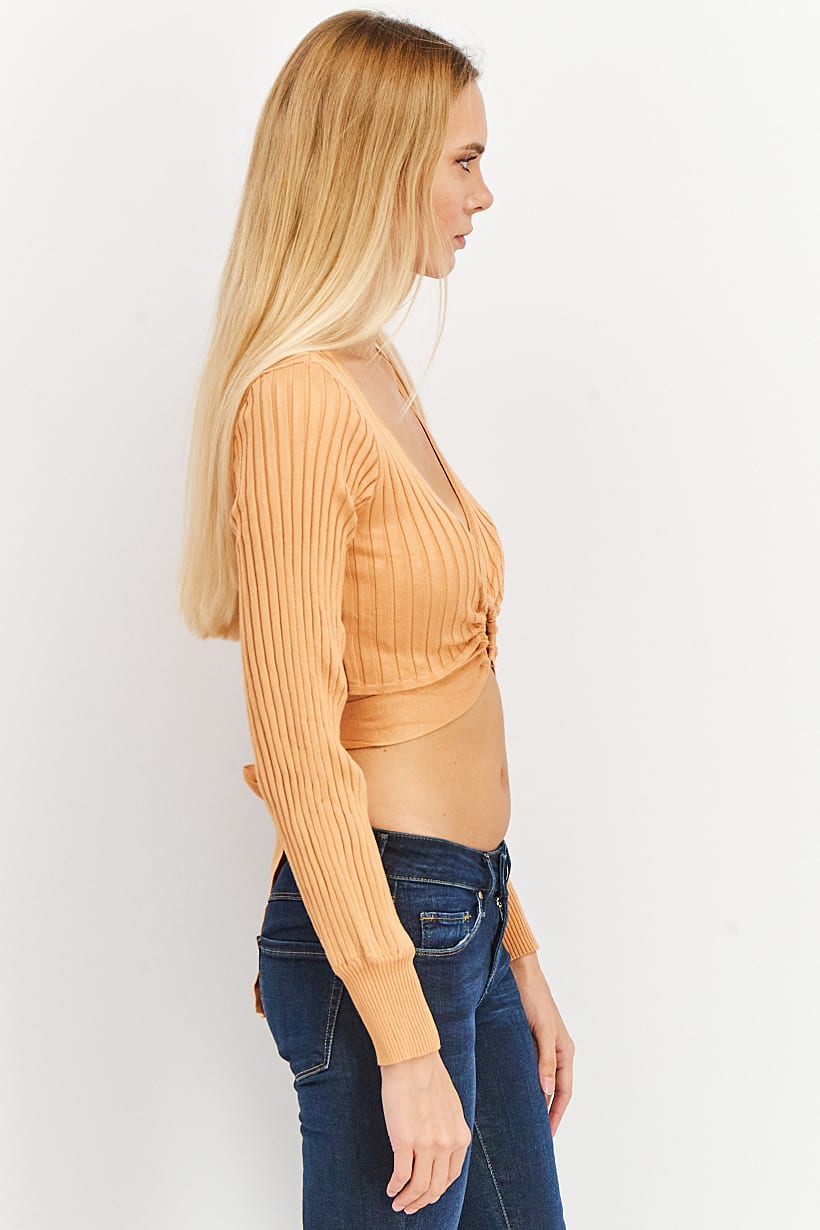 Women Clothing, Tops & Tees, women v neck long sleeve textured tops orange