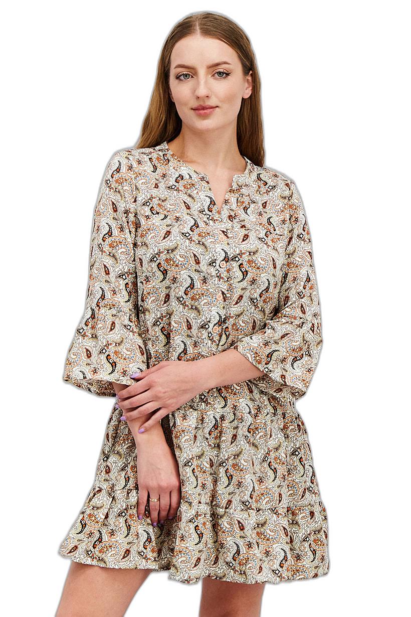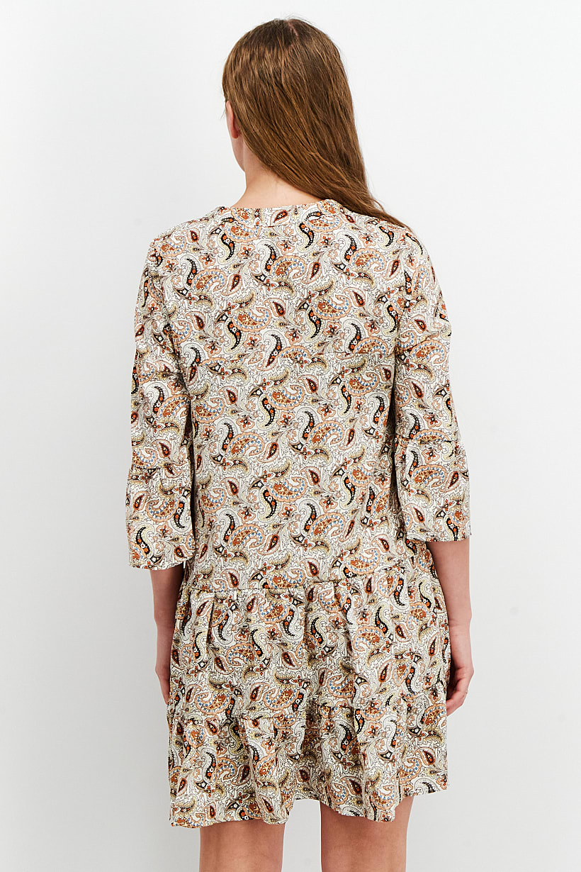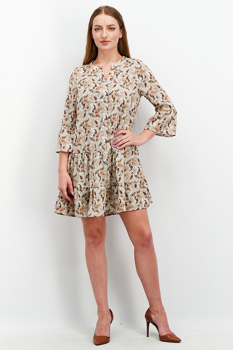 | nameOriginal | Women V-Neck Paisley Print Shirt Dress, Peach Combo |