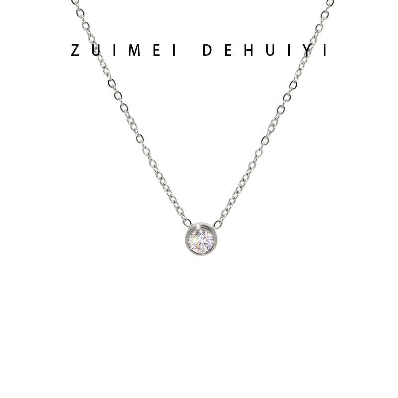 Women’s 18k rose gold zircon titanium steel clavicle chain solitaire diamond