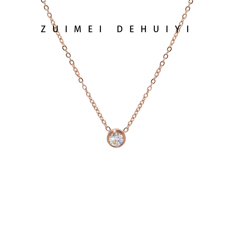 Women's 18k rose gold zircon titanium steel clavicle chain solitaire diamond