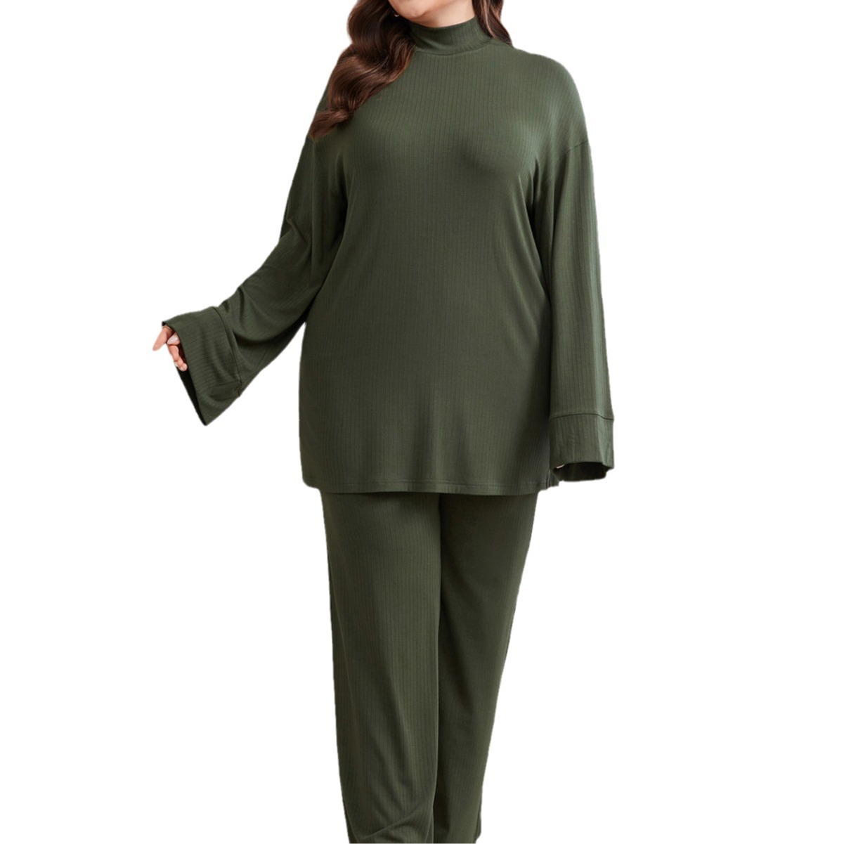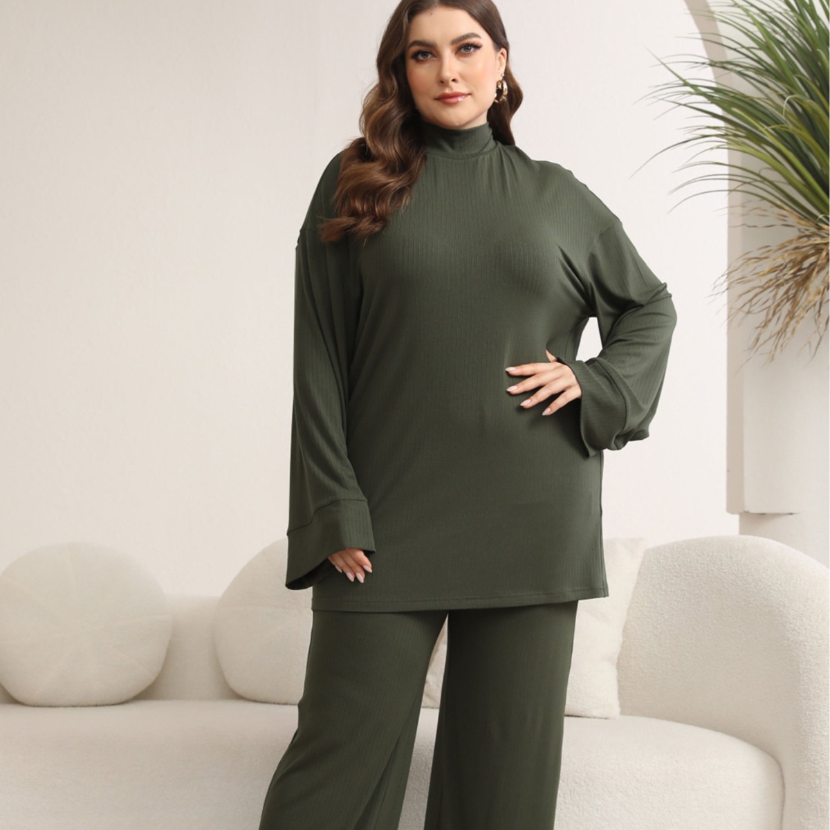 Women’s 2-piece set half turtleneck top bottom pants Abaya solid color suit MSL107