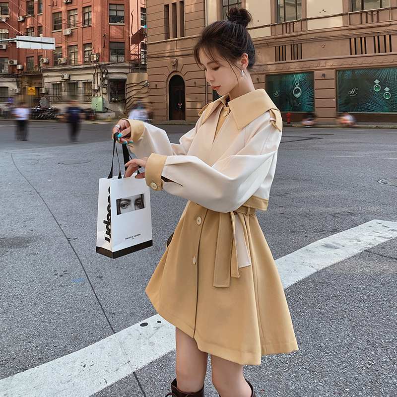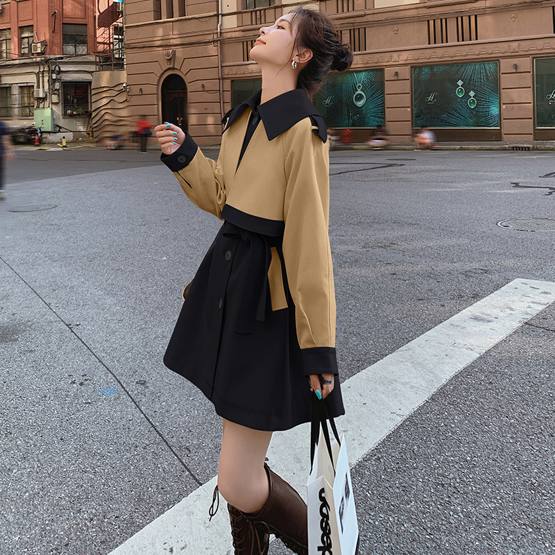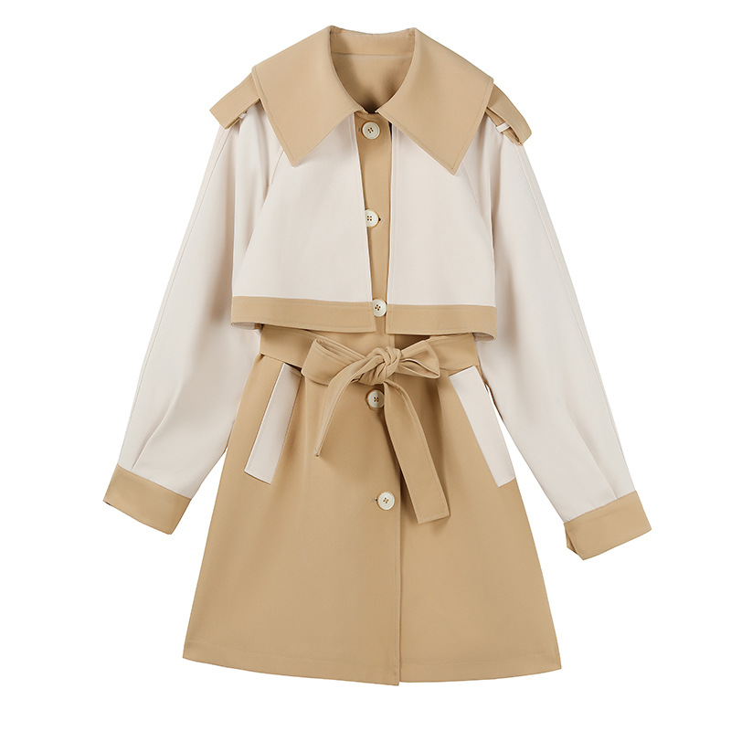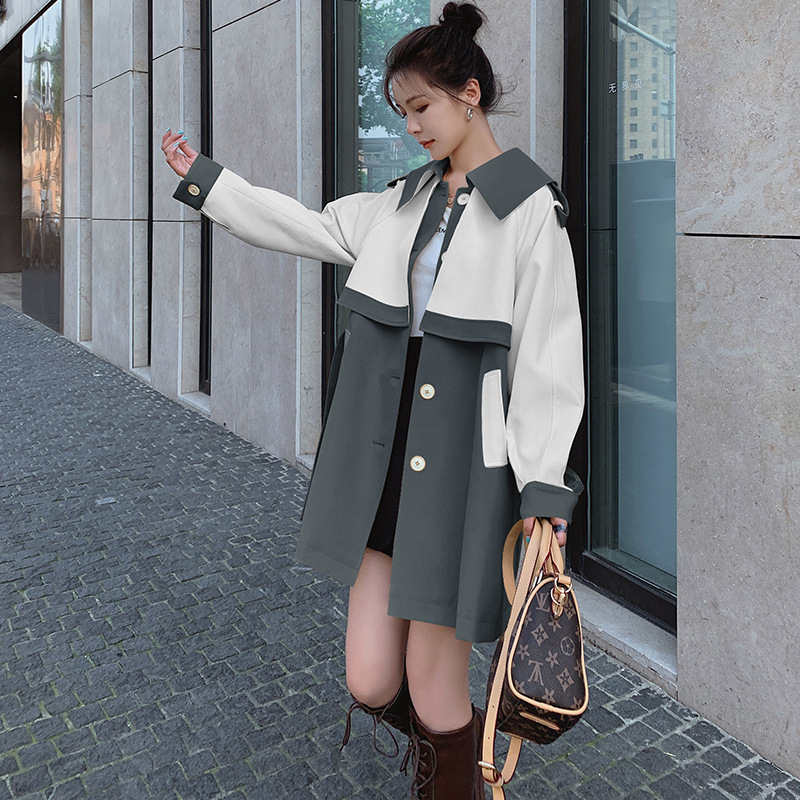 Women's 2022 Trenchcoat Spring New Mid-length Contrast Color This Year's Popular Small British Style Fashionable Trenchcoat Jacket